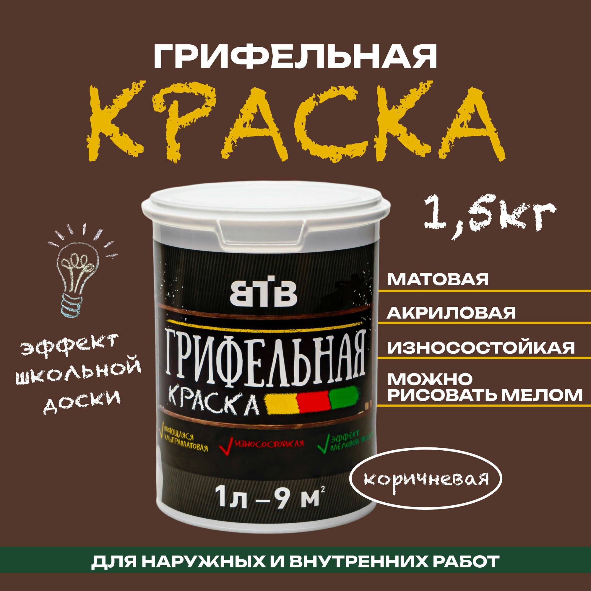 Ниже Вы можете прочитать отзывы на Грифельная краска ВТВ с эффектом школьной меловой доски, 1л, коричневая, для стен, для интерьера и декора, ознакомится с подробными характеристиками, посмотреть интересные обзоры и фотографии на Грифельная краска ВТВ с эффектом школьной меловой доски, 1л, коричневая, для стен, для интерьера и декора.