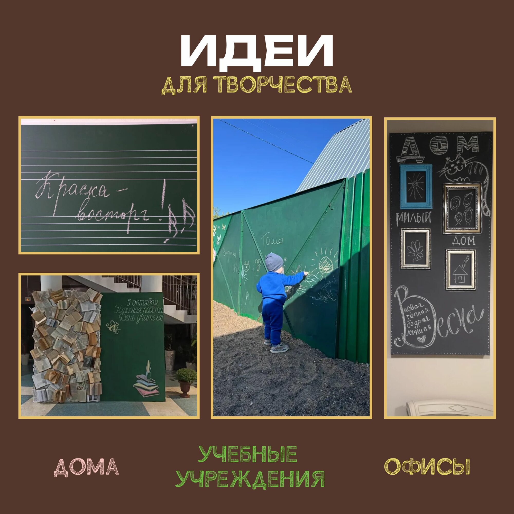 СохранитьГрифельная краска ВТВ с эффектом школьной меловой доски, 1л, коричневая, для стен, для интерьера и декора интересное: