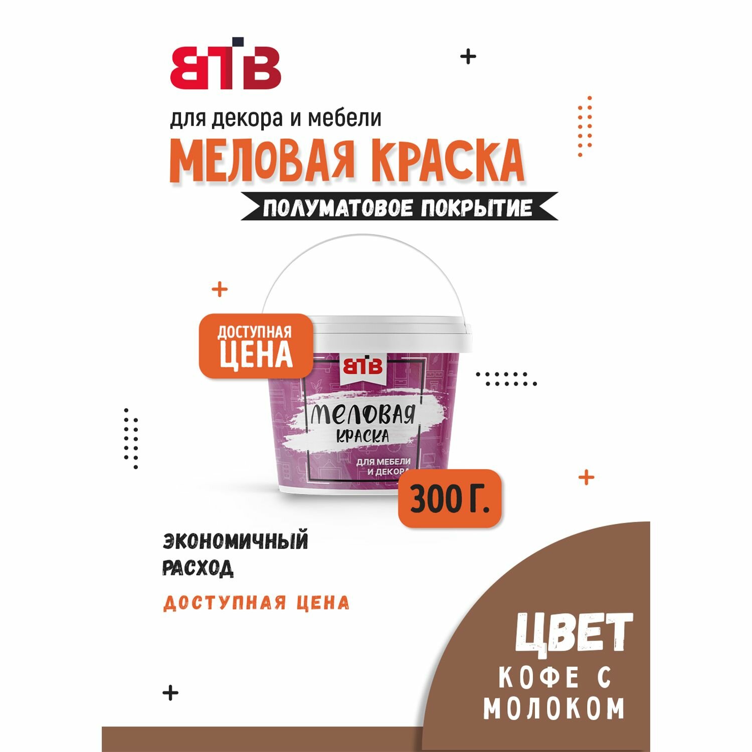Меловая краска для мебели и внутренней отделки ВТВ 0.3 кг, Гладкая, Акриловая, Полуматовое покрытие, Топленое молоко