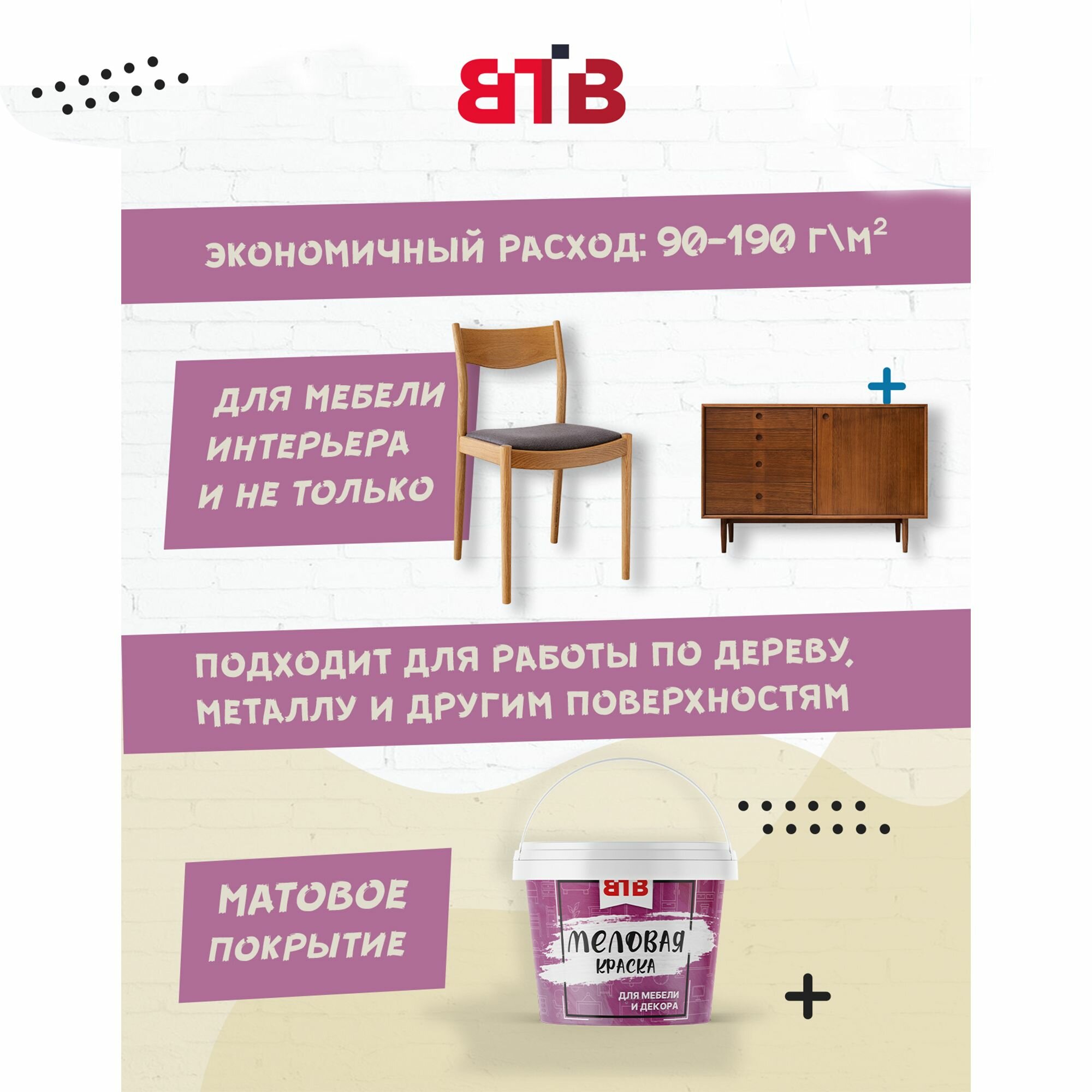Меловая краска для мебели и внутренней отделки ВТВ 0.3 кг, Гладкая, Акриловая, Полуматовое покрытие, Топленое молоко