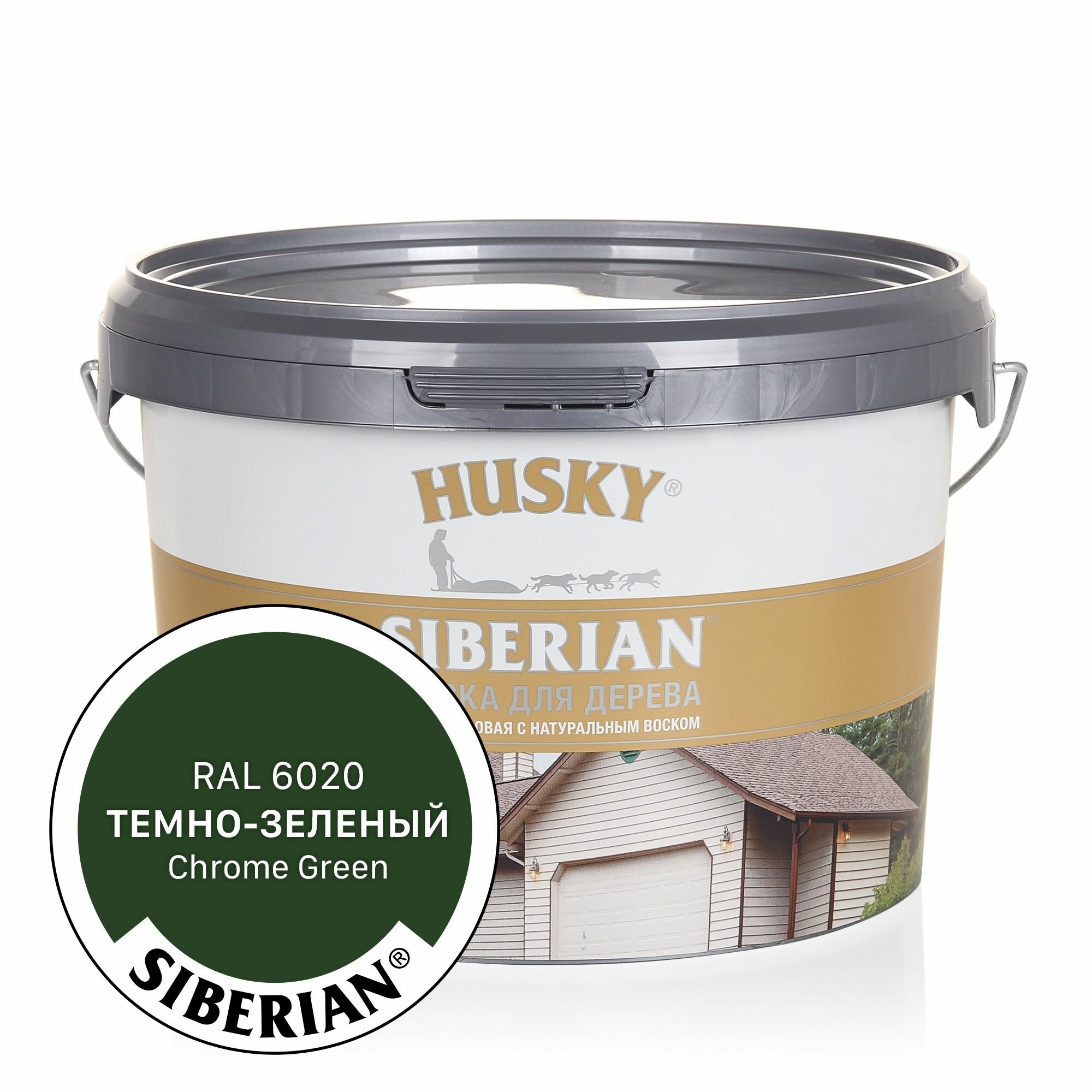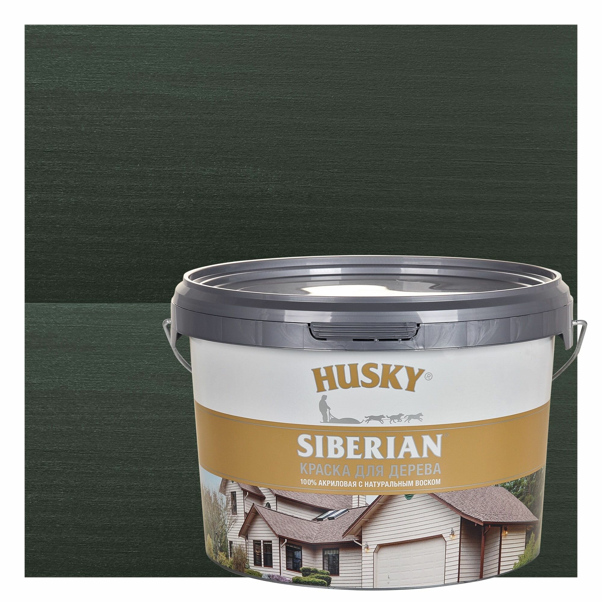 Купить Краска по дереву HUSKY SIBERIAN Темно-зелёный RAL 6020, акриловая полуматовая, 2,7л