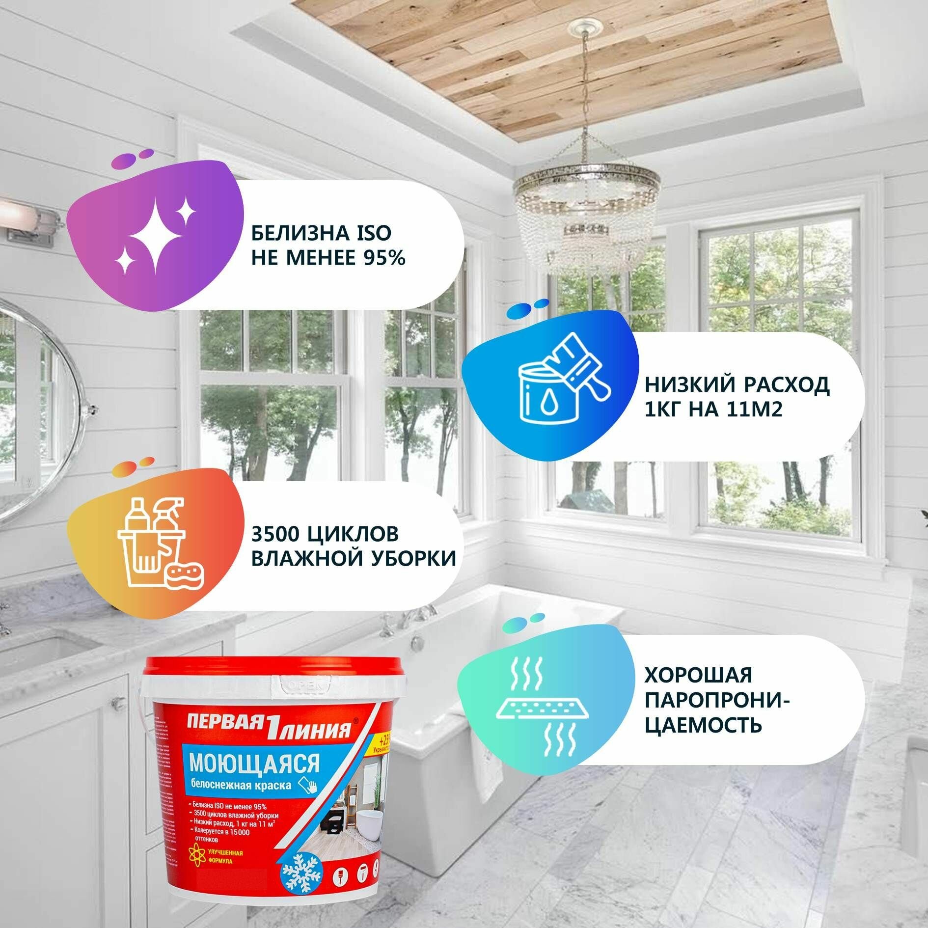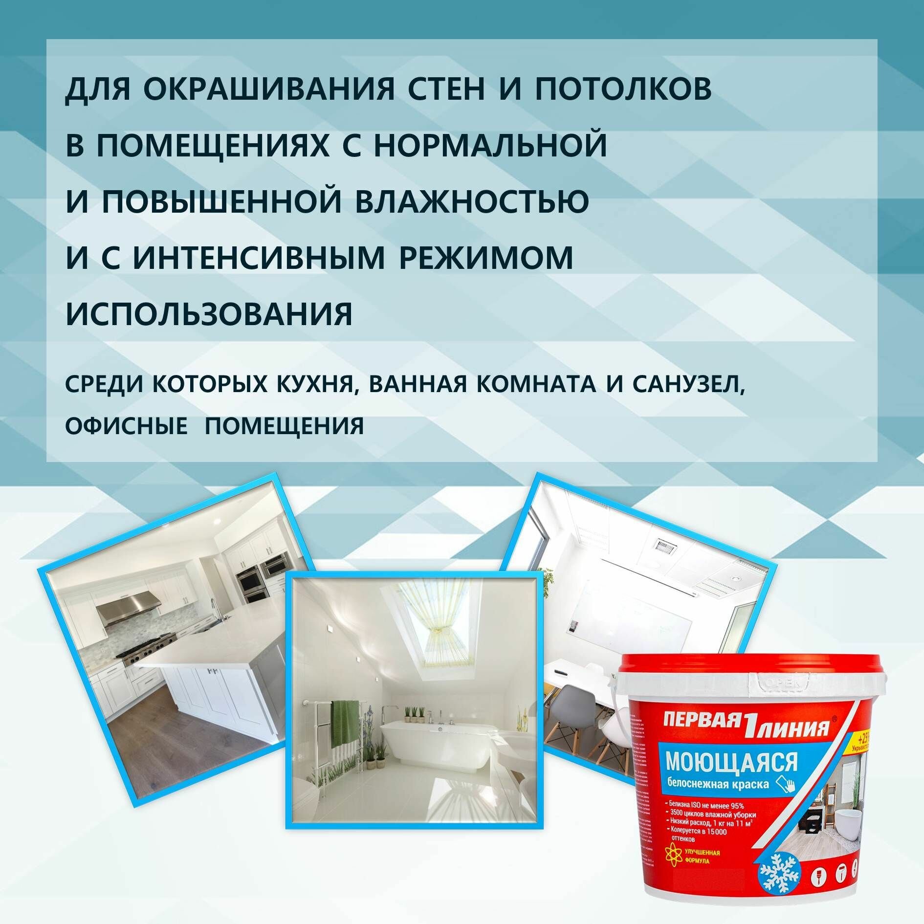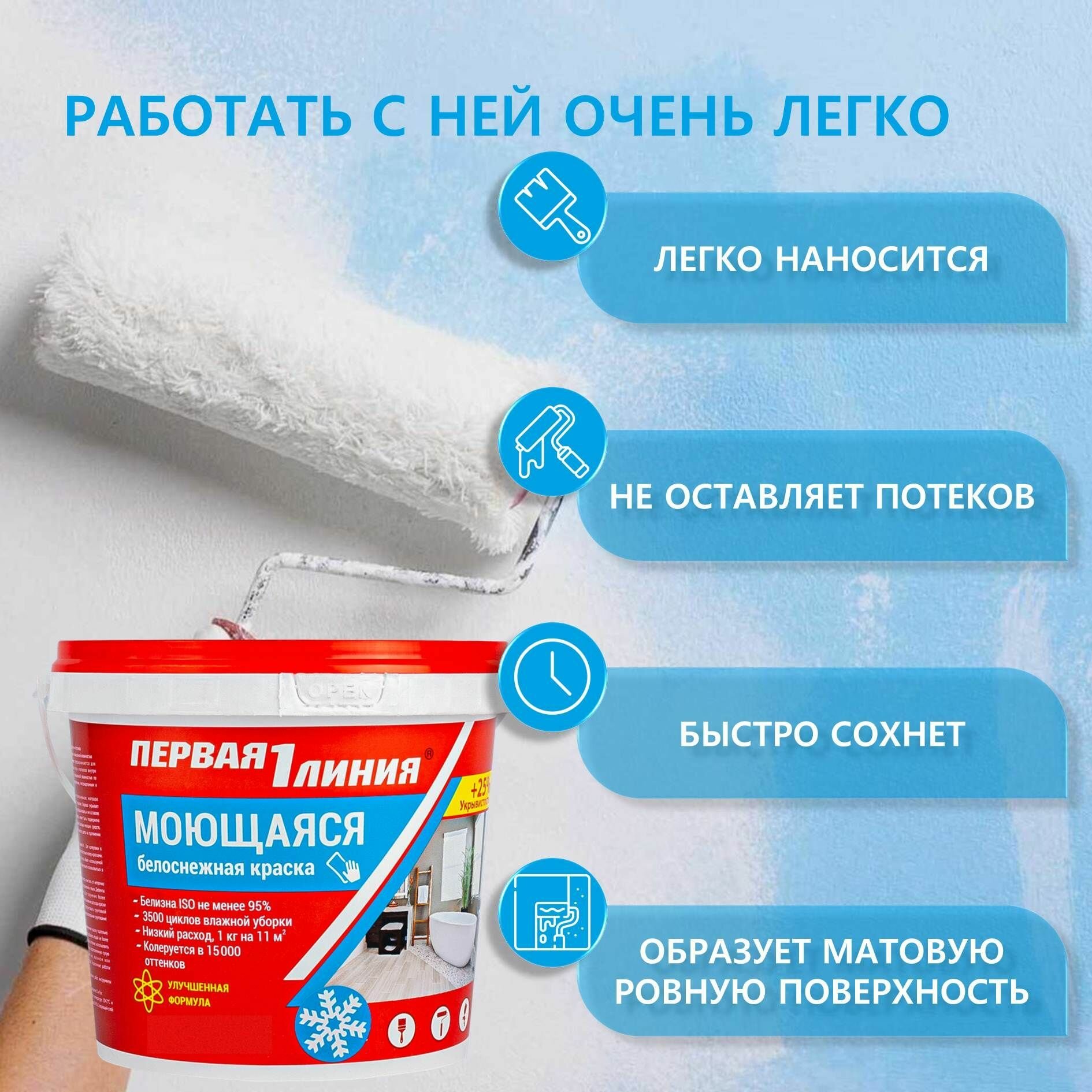 Краска моющая Первая линия быстросохнущая, акриловая, белоснежная 14 кг интересное: