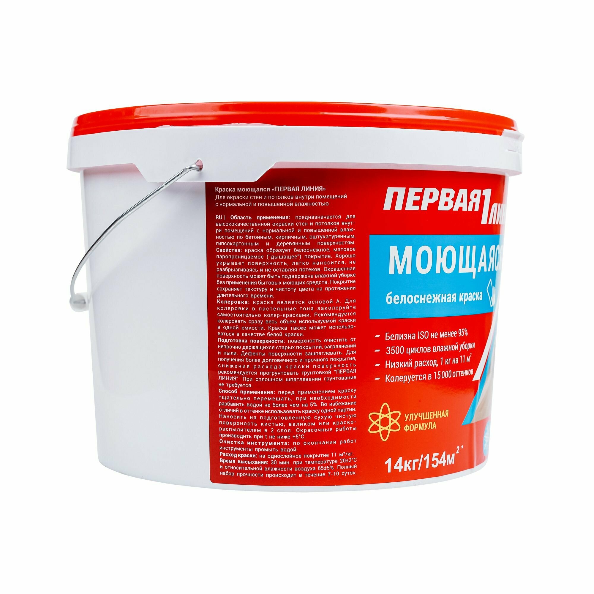 Купить Краска моющая Первая линия быстросохнущая, акриловая, белоснежная 14 кг