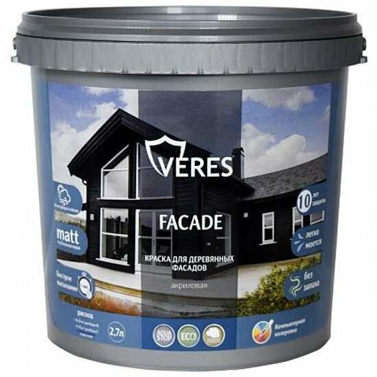 Краска для деревянных фасадов Veres Facade, акриловая, матовая, 2.7 л, гармония