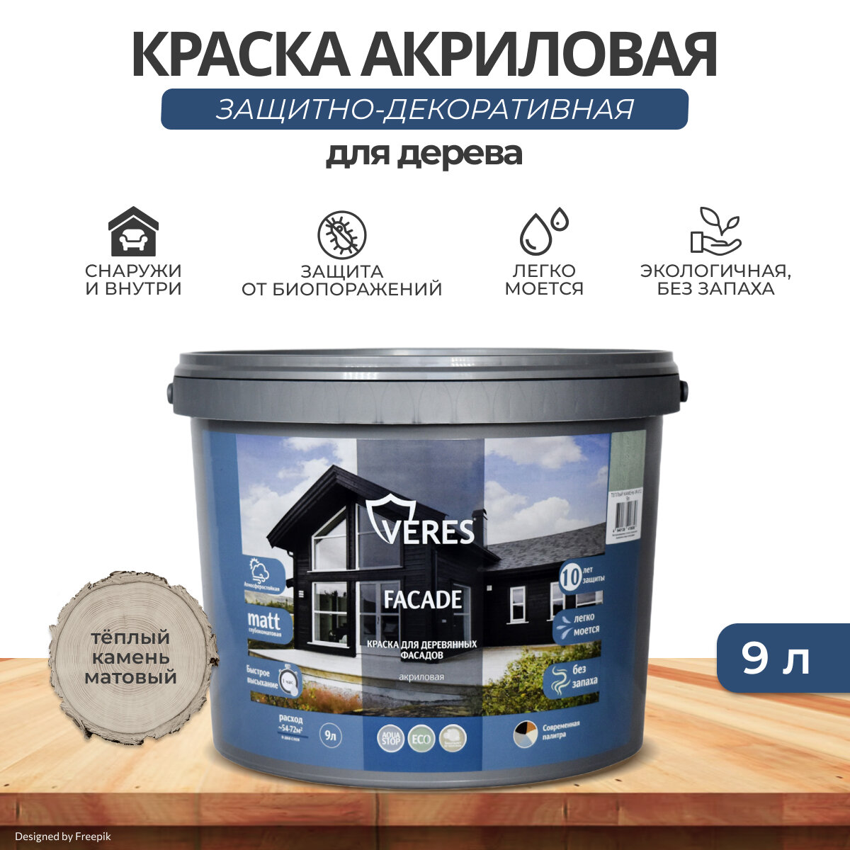 Купить Краска для деревянных фасадов Veres Facade, акриловая, матовая, 9 л, теплый камень