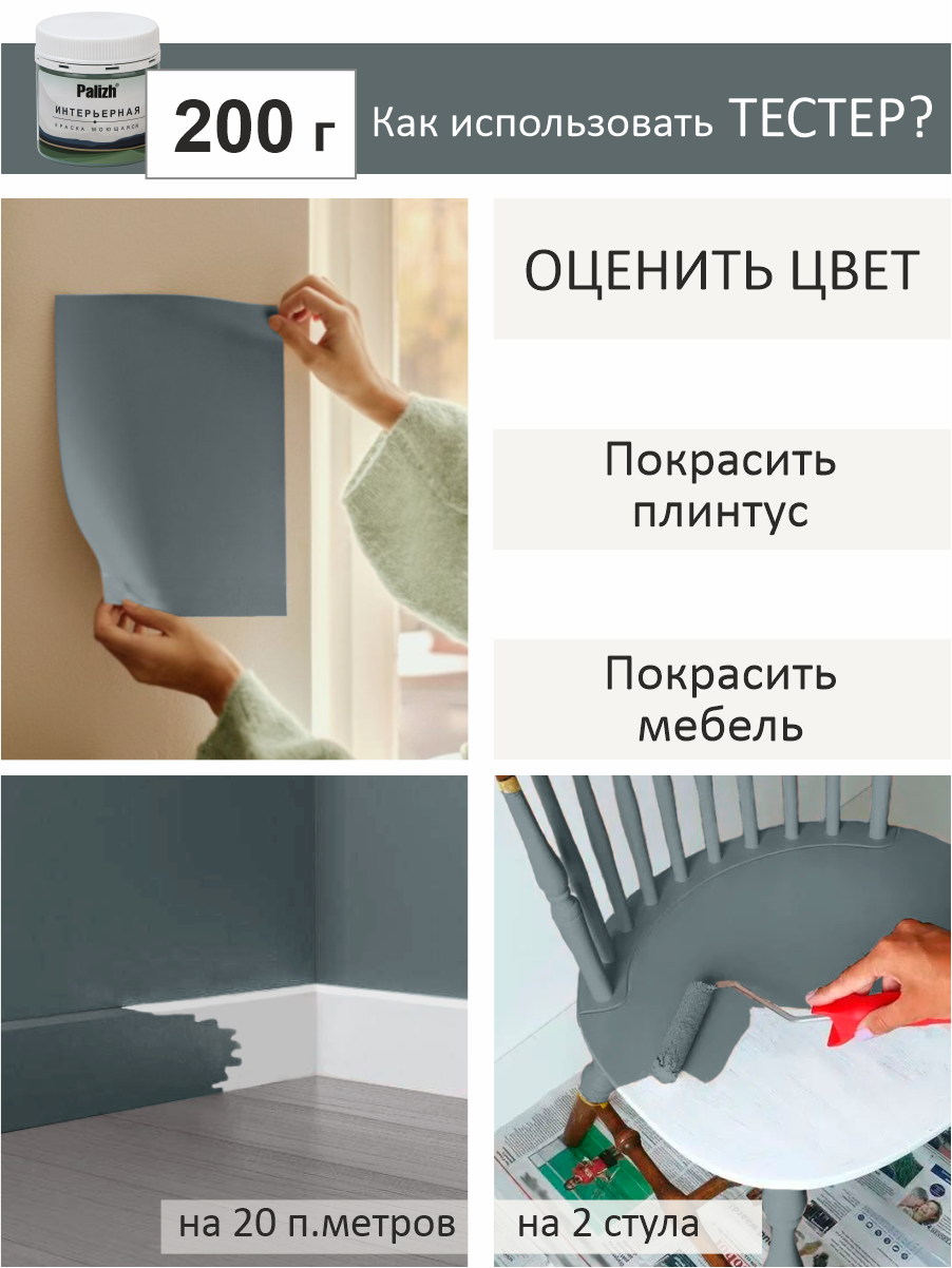Акриловая краска для стен и потолков интерьерная без запаха моющаяся "Palizh" Жемчужный серый 0,2 кг
