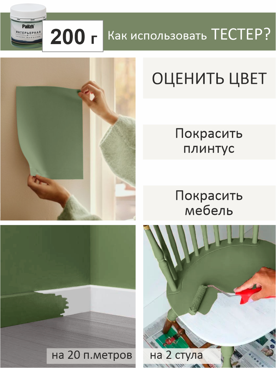Купить Акриловая краска для стен и потолков интерьерная без запаха моющаяся "Palizh" Сосновый бор 0,2 кг
