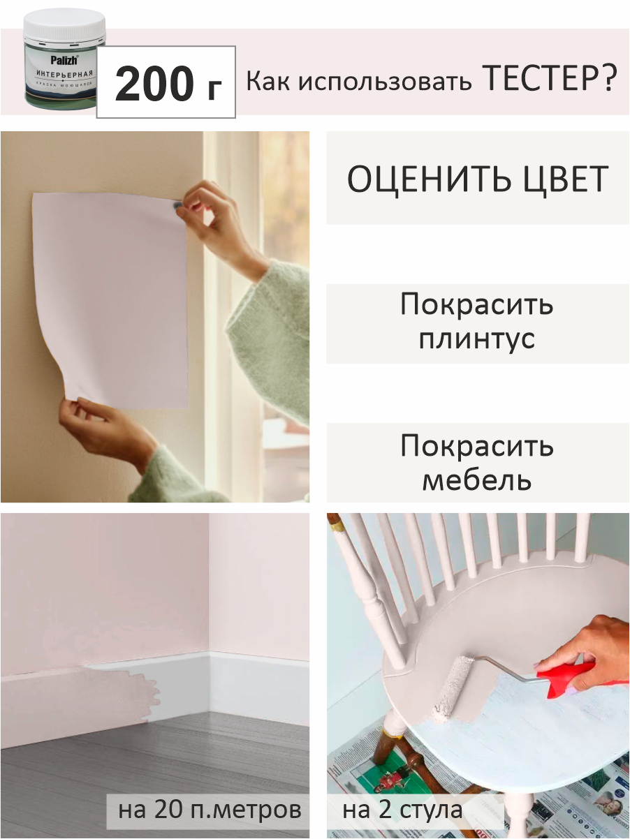 Акриловая краска для стен и потолков интерьерная без запаха моющаяся "Palizh" Розовый кварц 0,2 кг
