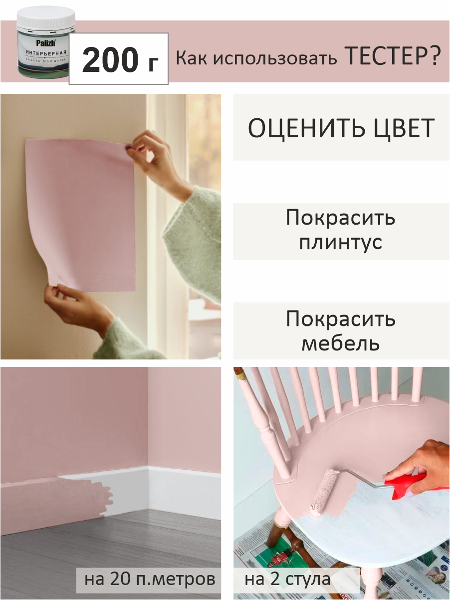 Купить Акриловая краска для стен и потолков интерьерная без запаха моющаяся "Palizh" Розовый кварц 0,2 кг