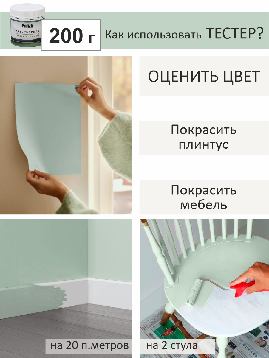 Акриловая краска для стен и потолков интерьерная без запаха моющаяся "Palizh" Голубой эвкалипт 0,2 кг