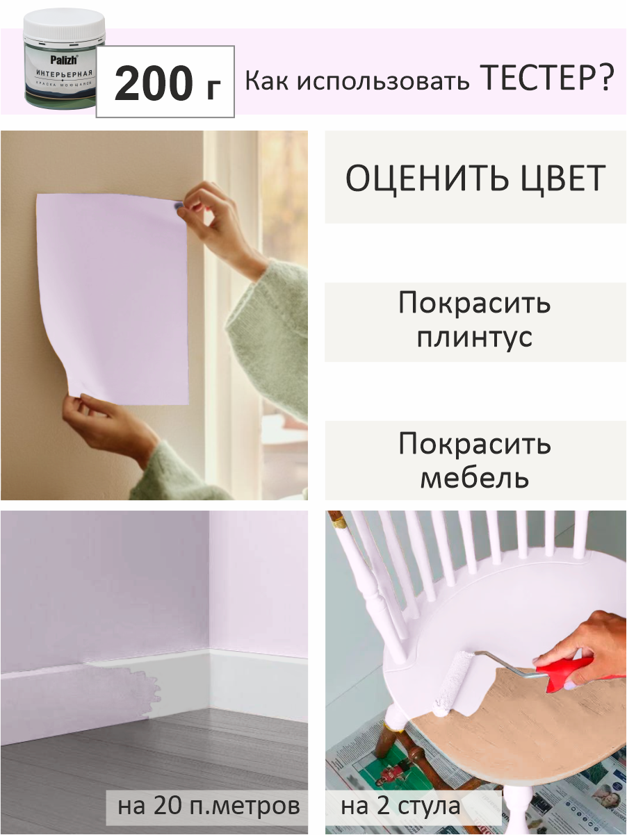 Акриловая краска для стен и потолков интерьерная без запаха моющаяся "Palizh" Розовый кварц 0,2 кг