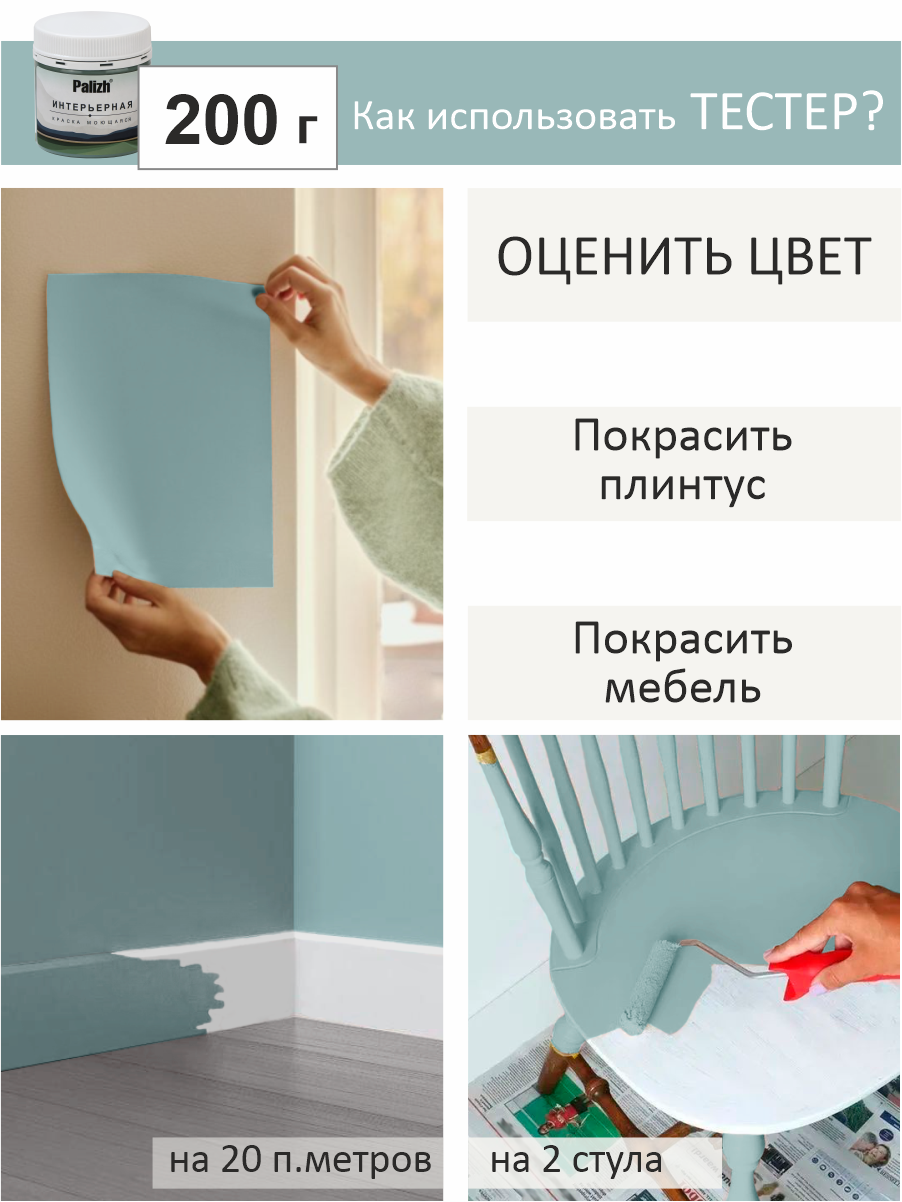 Купить Акриловая краска для стен и потолков интерьерная без запаха моющаяся "Palizh" Голубой эвкалипт 0,2 кг