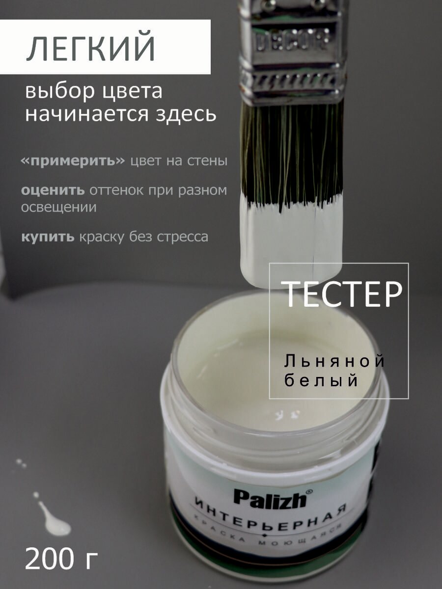 Акриловая краска для стен и потолков интерьерная без запаха моющаяся "Palizh" Льняной белый 0,2 кг