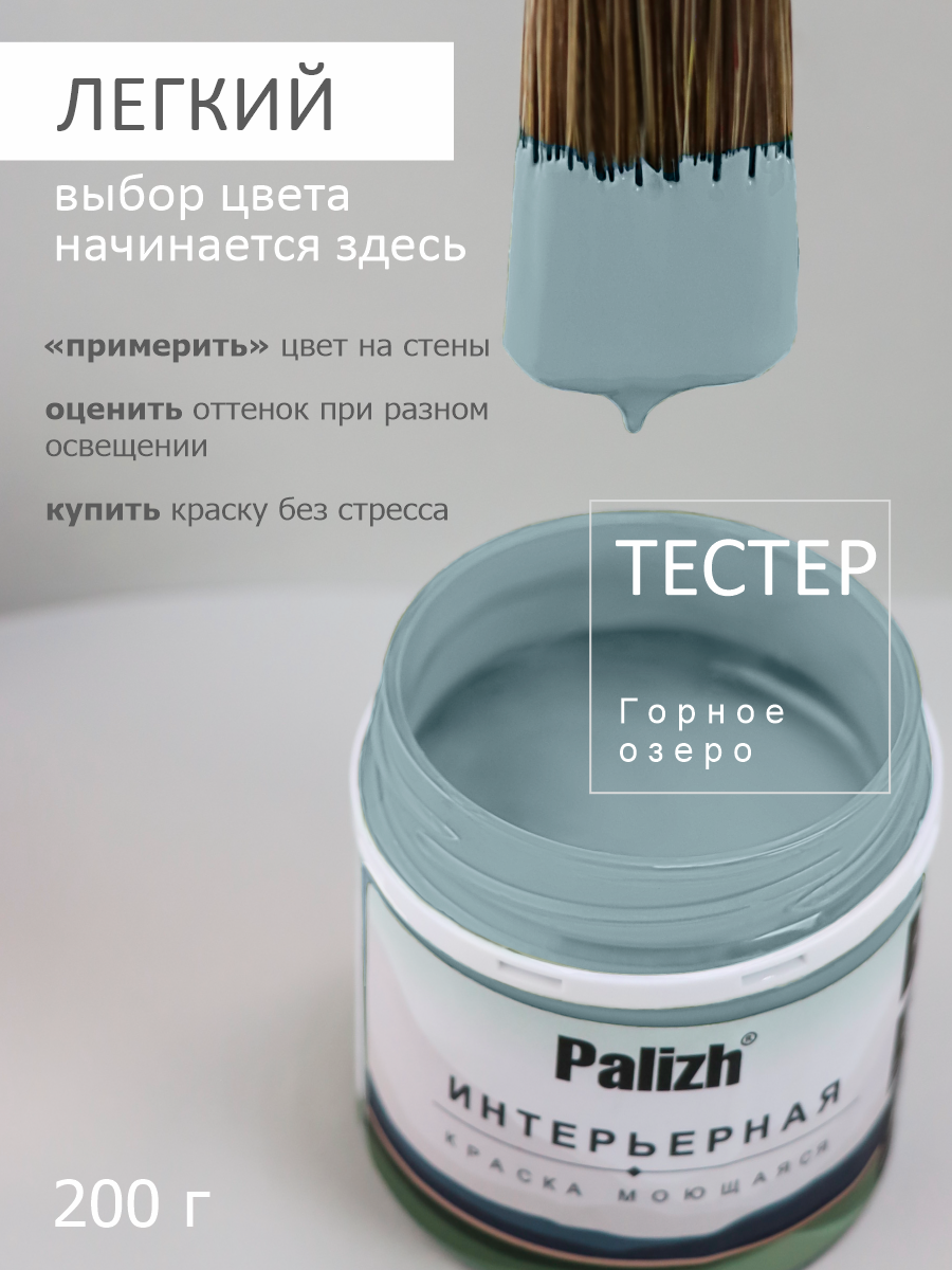Акриловая краска для стен и потолков 0,2 кг интерьерная без запаха моющаяся "Palizh" Горное озеро