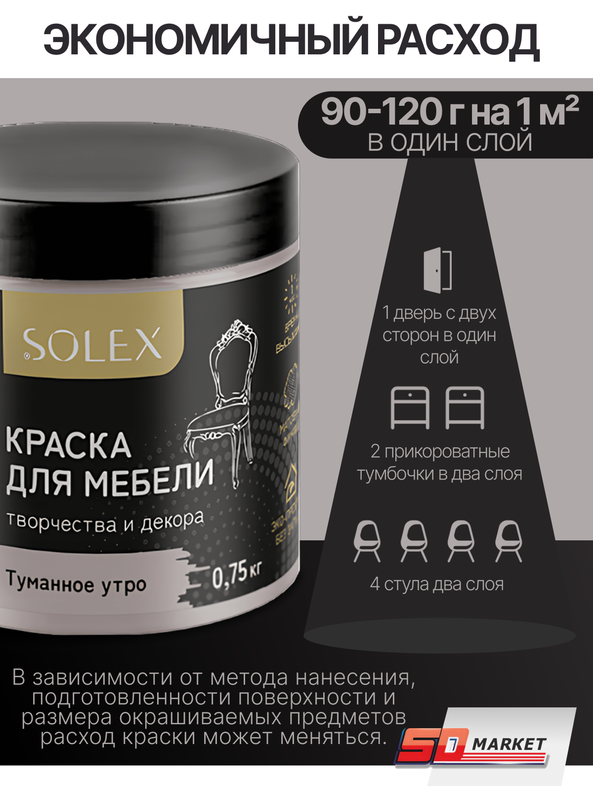 Краска для мебели и декора серый шелк 750 гр , SOLEX