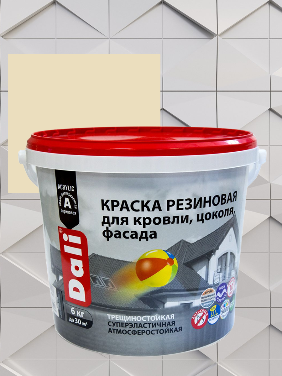 Купить Краска резиновая для стен и кровли, цоколя, фасада DALI слоновая кость 6 кг