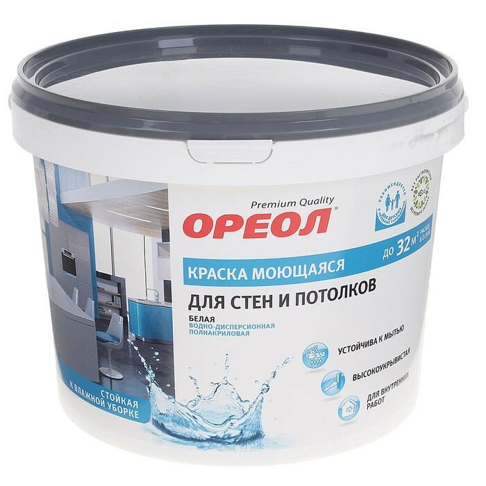 Краска интерьерная моющаяся водно-дисперсионная полиакриловая Ореол Дисконт белая матовая 6,5 кг. интересное: