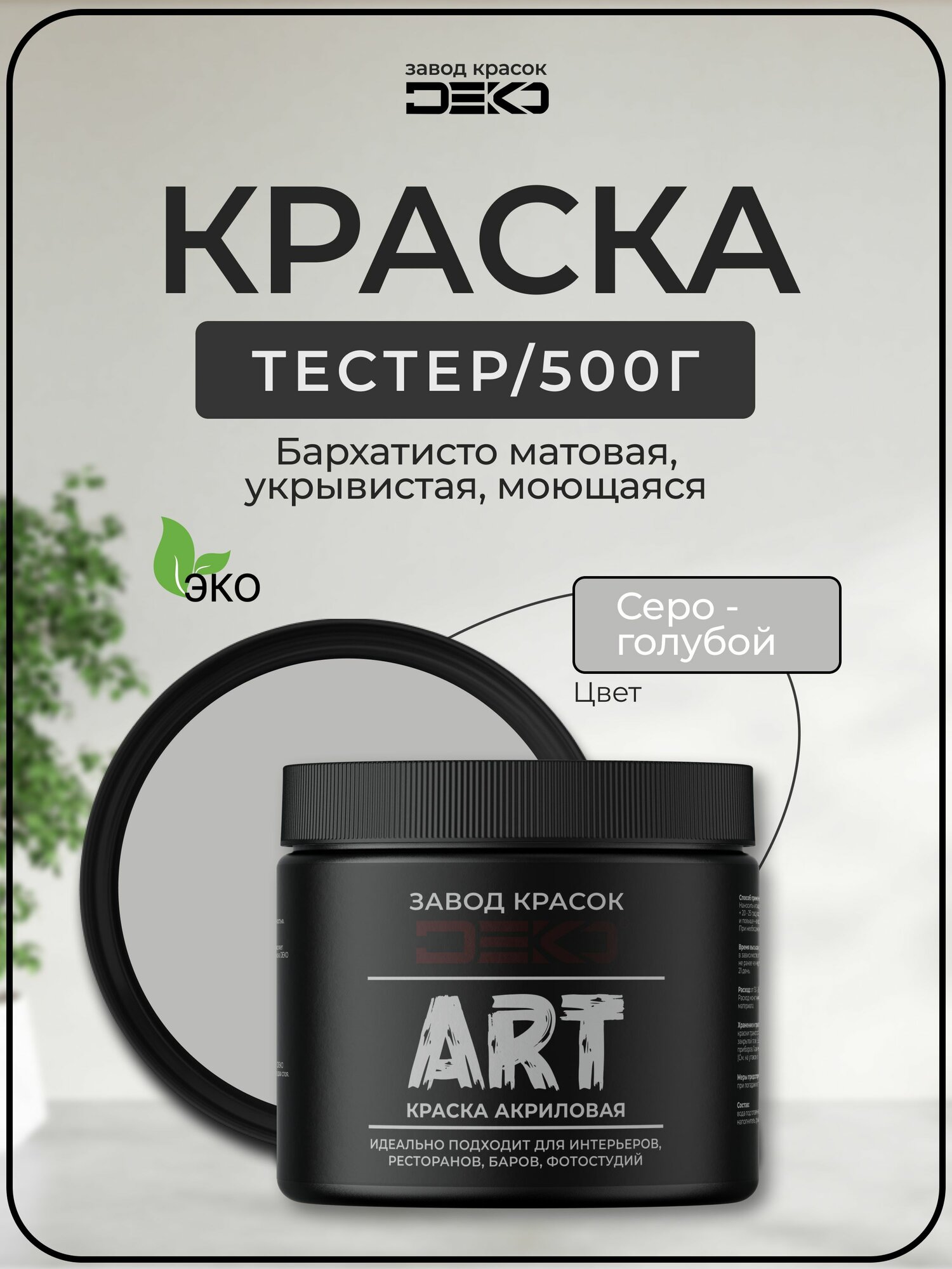 Краска для стен моющаяся DEKO ART интерьерная без запаха, полынь 500гр