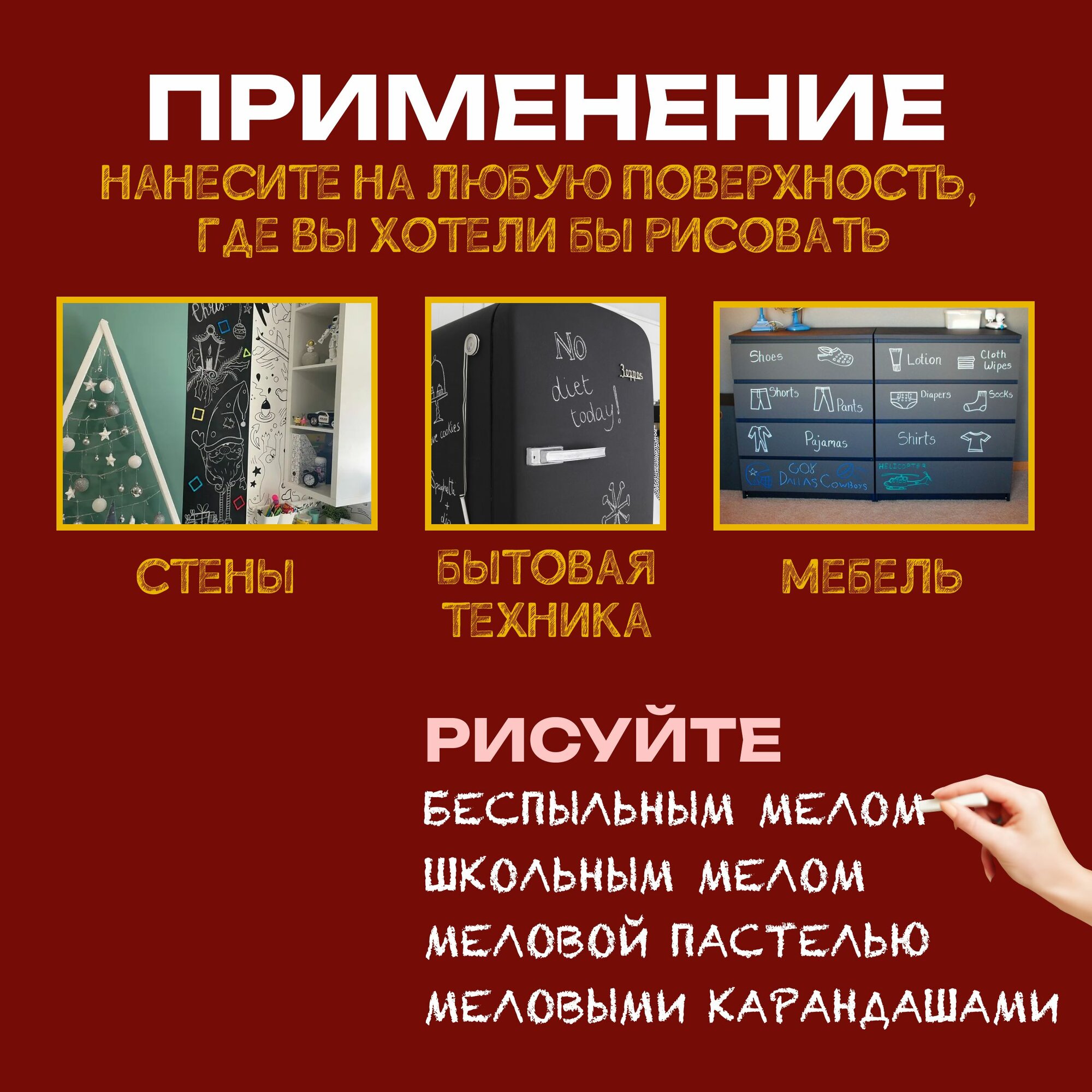 СохранитьГрифельная краска ВТВ с эффектом школьной меловой доски, 1 л, красный интересное: