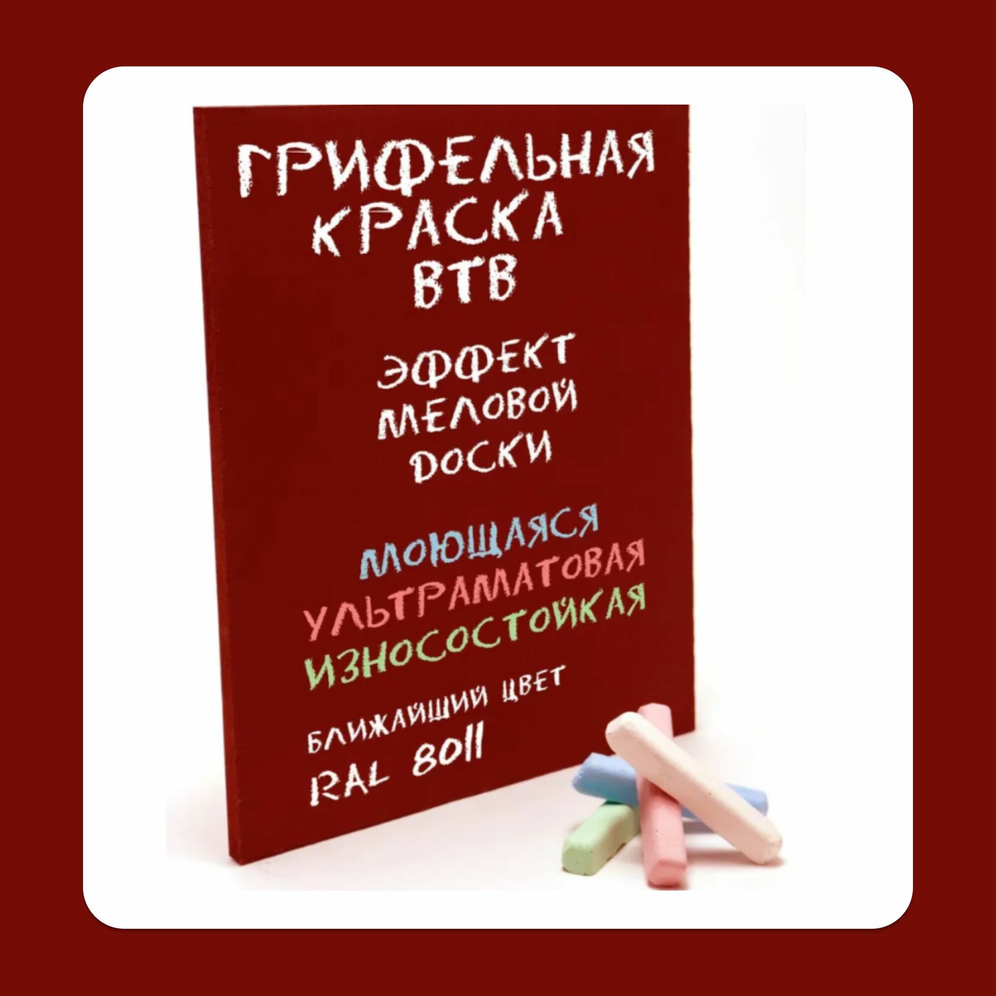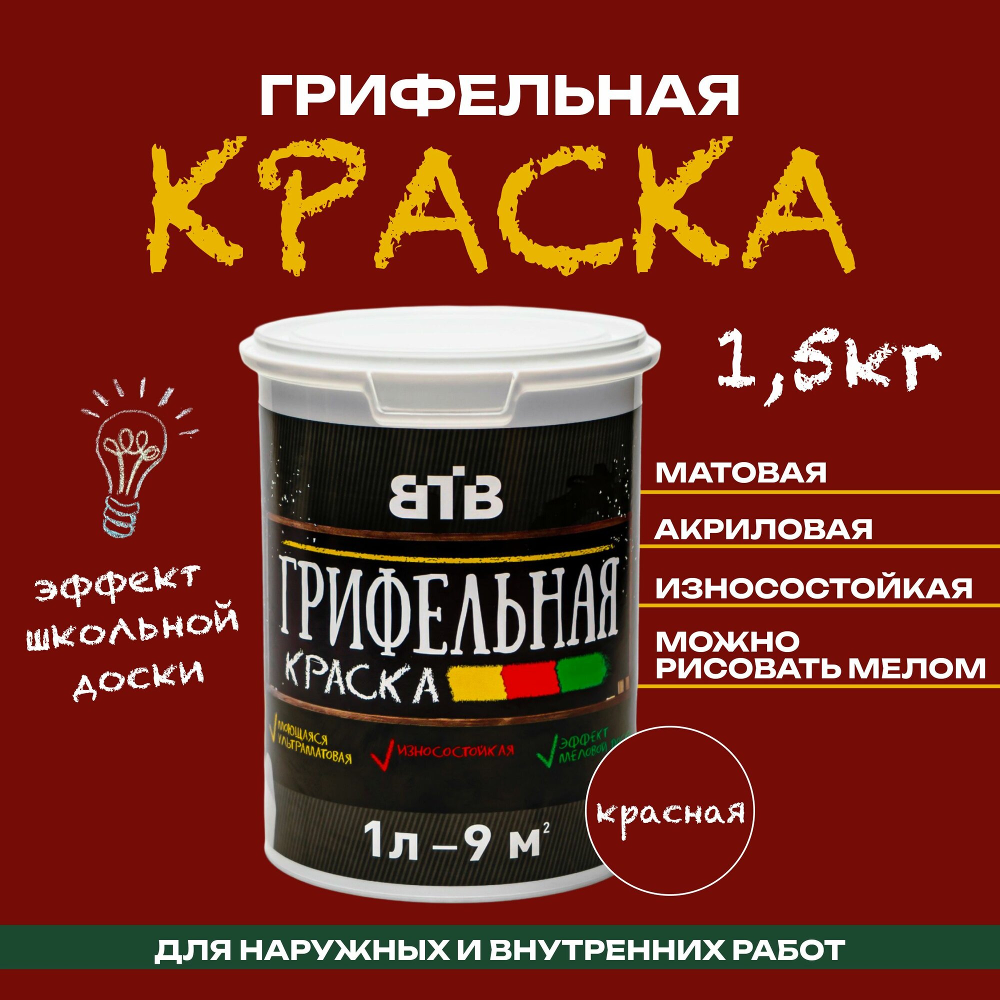 Купить Грифельная краска ВТВ с эффектом школьной меловой доски, 1 л, красный