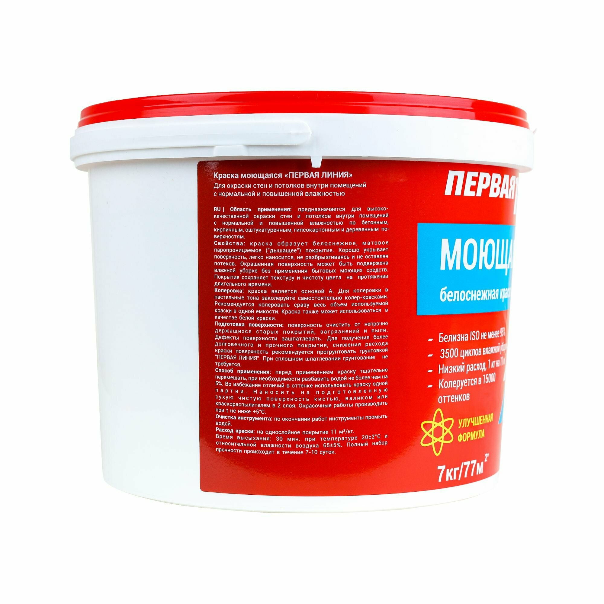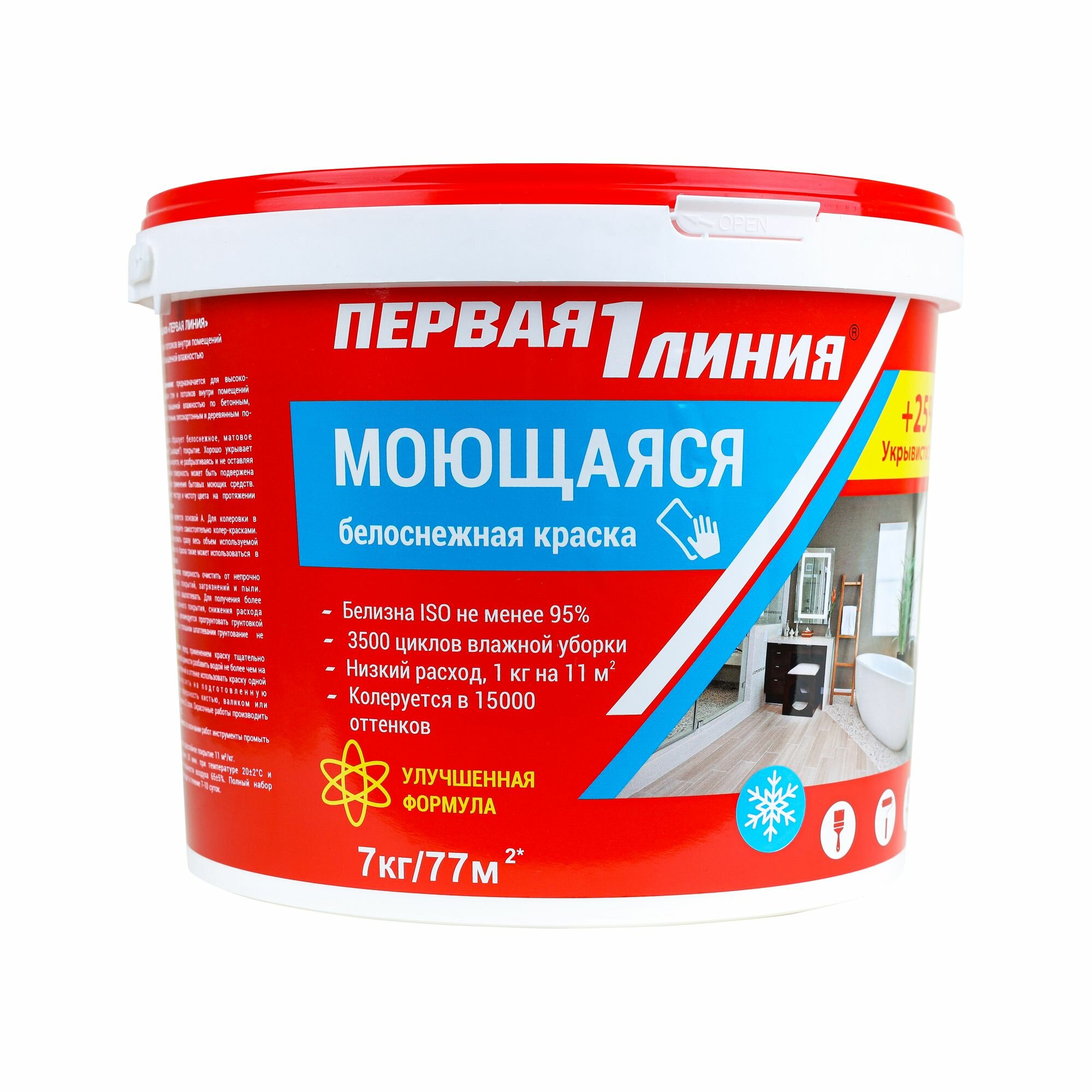 Купить Краска моющая Первая линия быстросохнущая, акриловая, белоснежная 7 кг