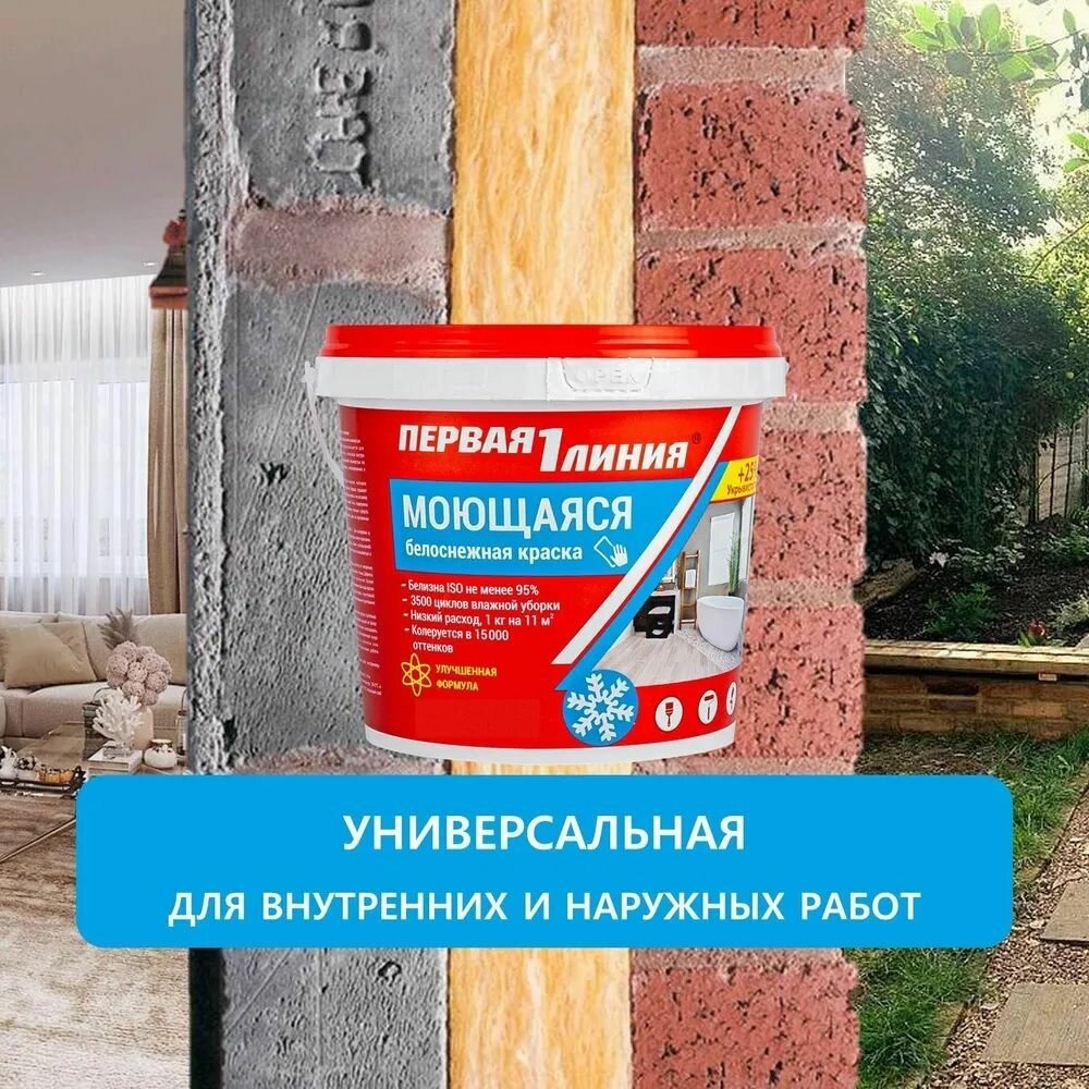Краска моющая Первая линия быстросохнущая, акриловая, белоснежная 3 кг интересное: