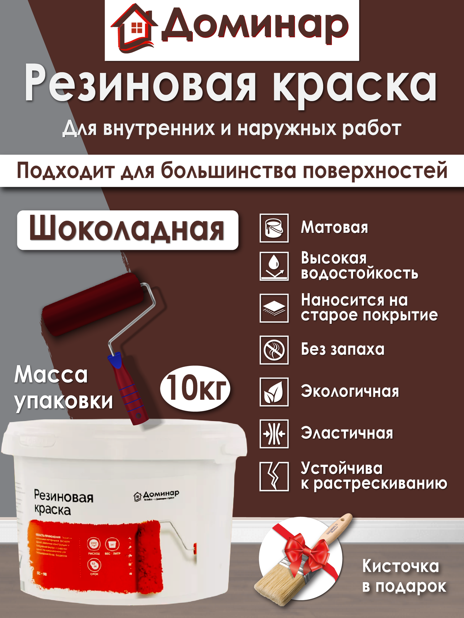 Купить Резиновая краска для наружных, внутренних работ влагостойкая матовая БС 98 Доминар, шоколадная, 10 кг