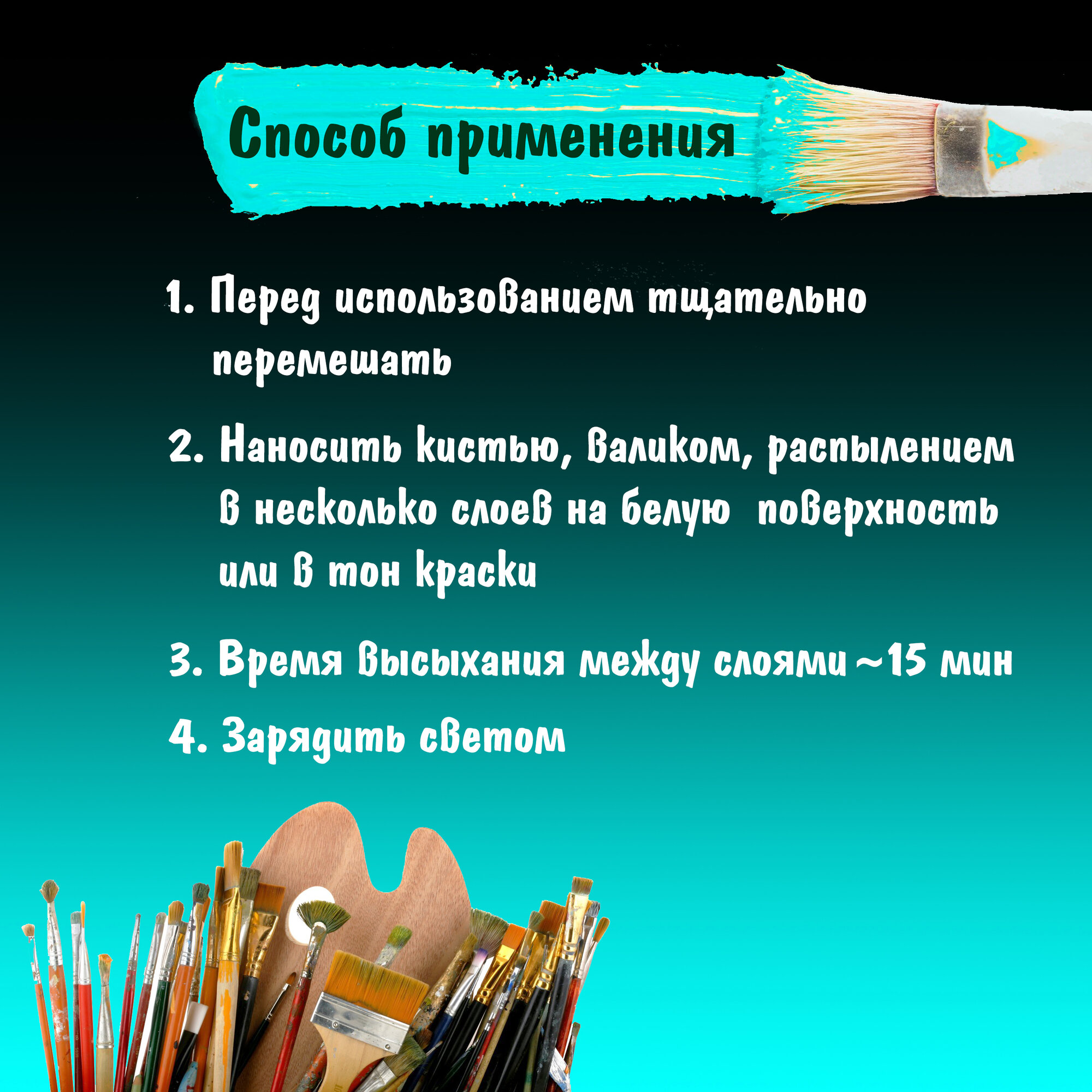 Светящаяся в темноте акриловая краска, Цвет свечения Голубой, 100 мл интересное: