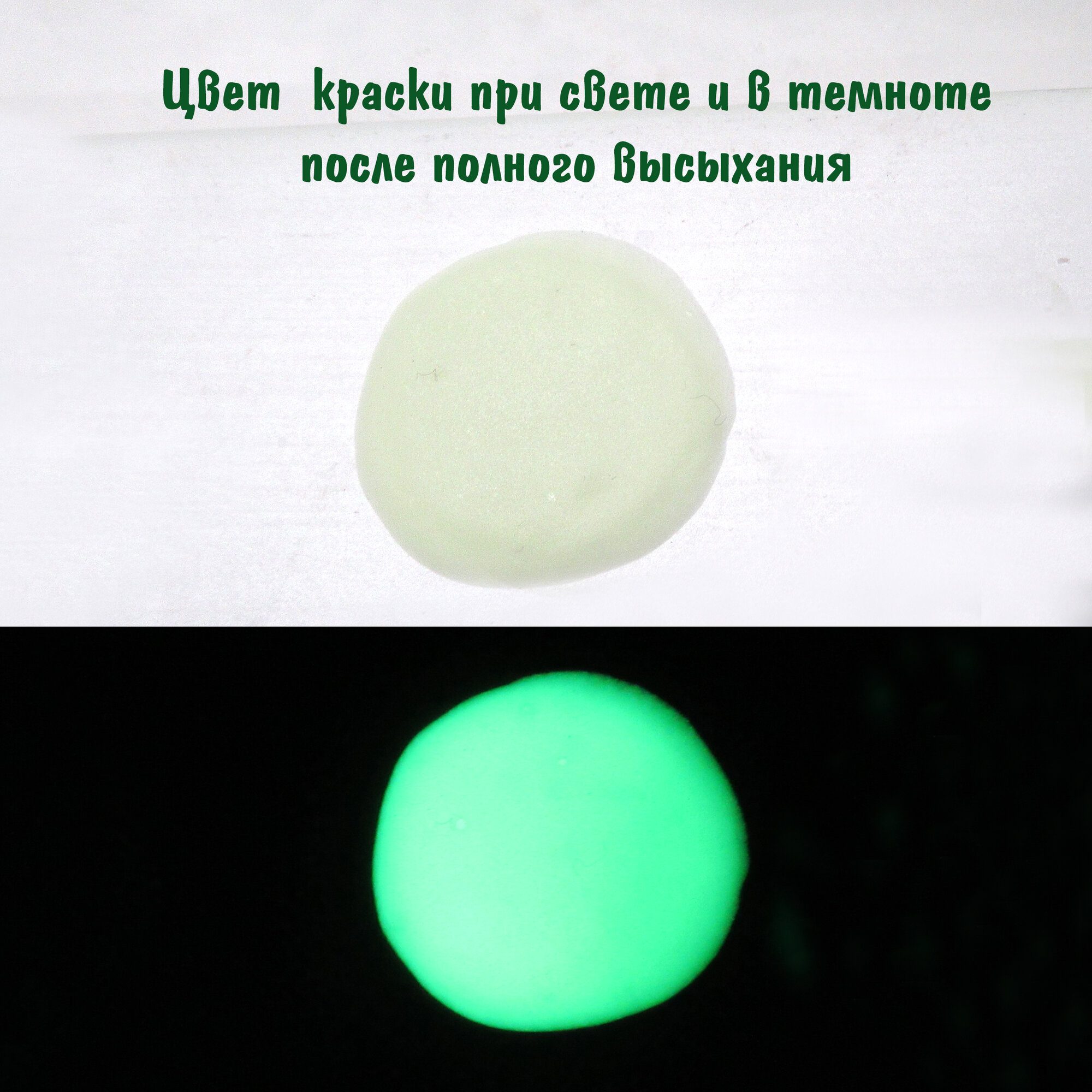 Светящаяся в темноте акриловая краска, Цвет свечения Зеленый, 100 мл интересное: