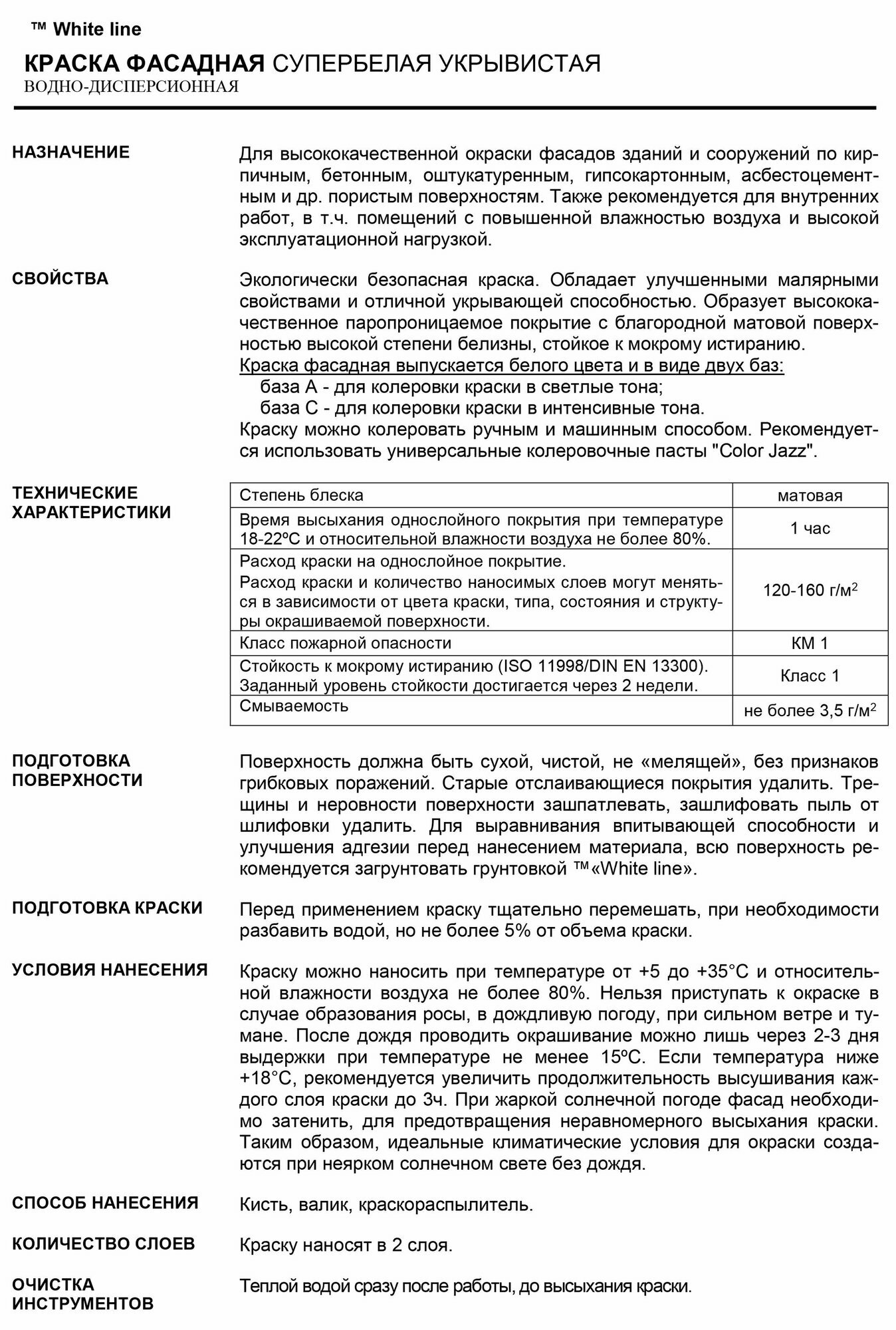 White Line Краска фасадная для наружных работ, укрывистая / акриловая, матовая, белая, 1 кг