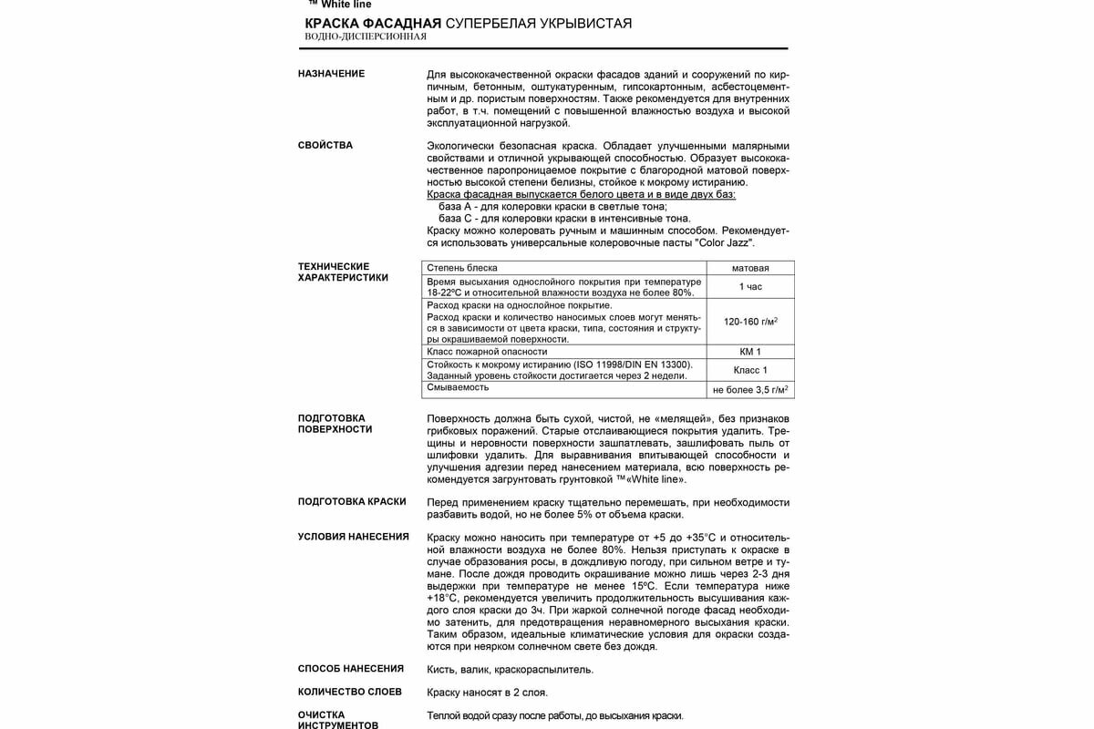 White Line Краска фасадная для наружных работ, укрывистая / акриловая, матовая, белая, 1 кг