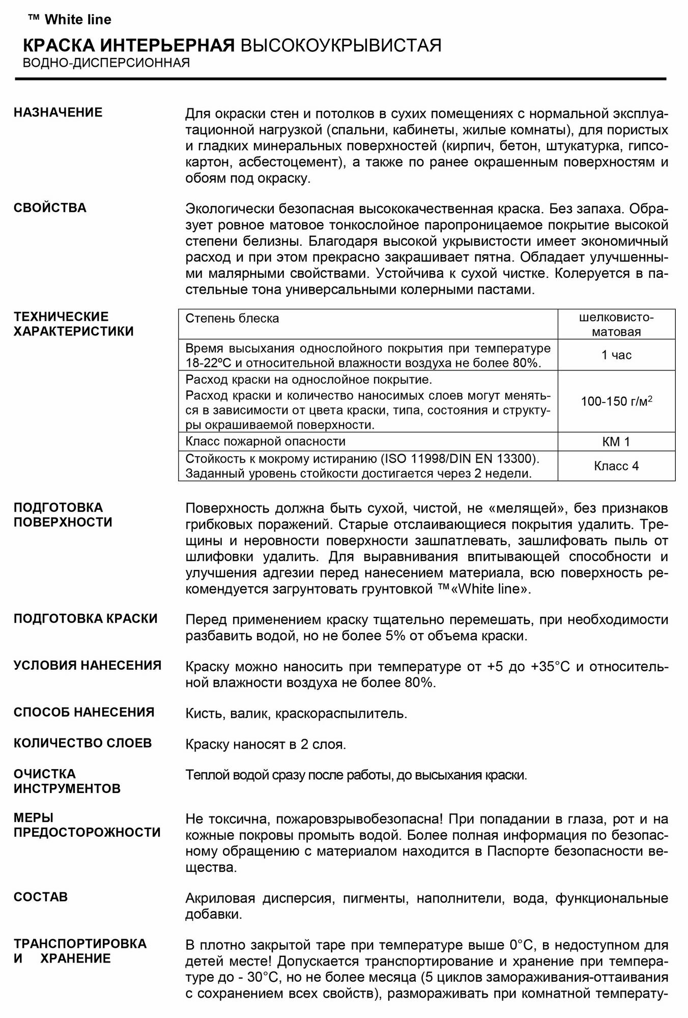 White Line Краски для стен и потолка моющаяся, высокоукрывистая, без запаха / акриловая, белая, матовая, 14 кг интересное: