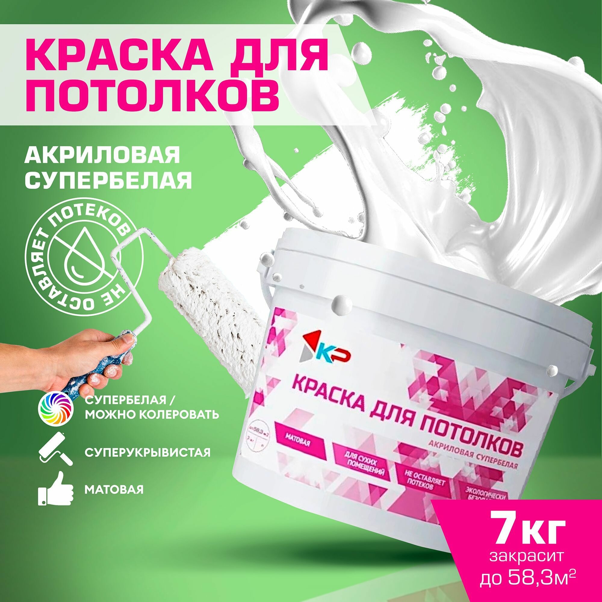 Краска для потолков КР, акриловая, супербелая, матовая, 7 кг интересное: