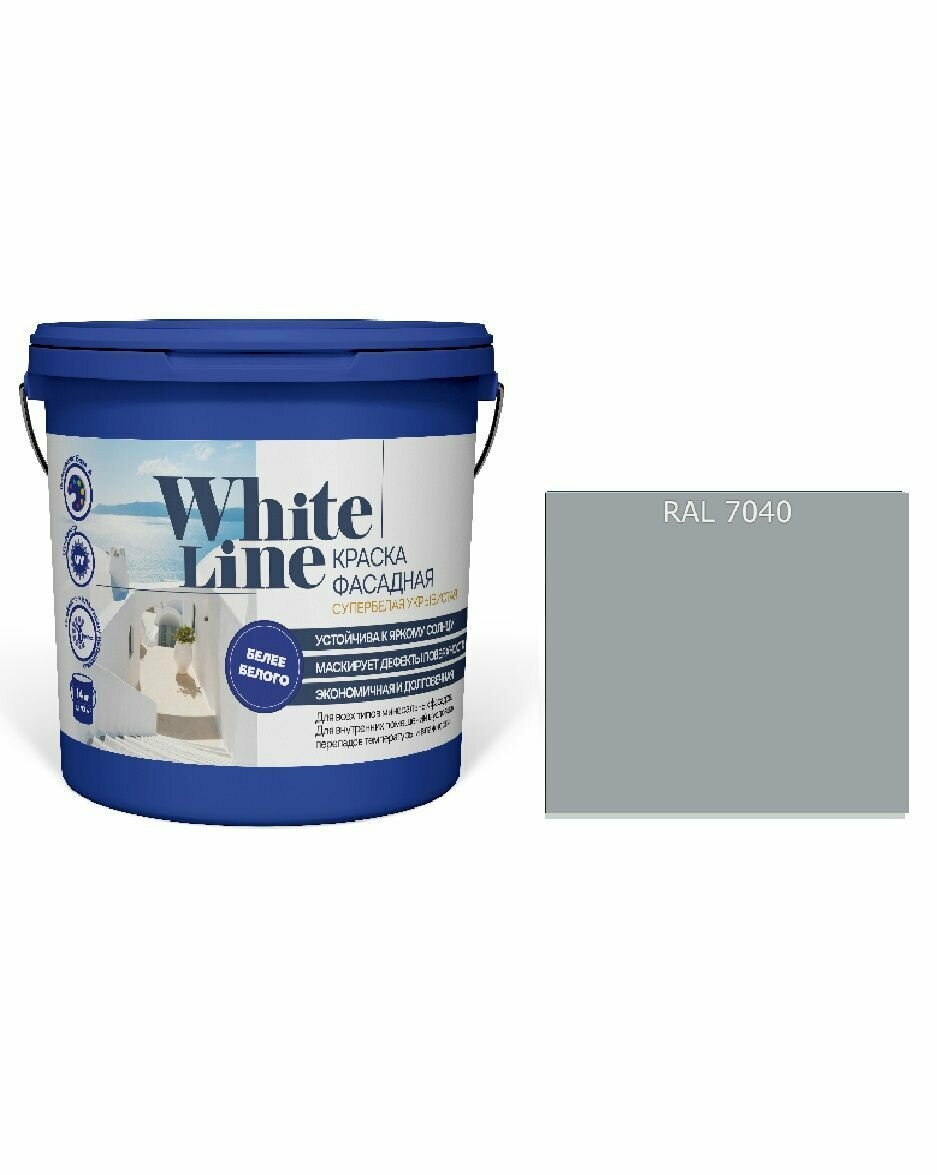 White Line Краска фасадная для наружных работ, укрывистая / акриловая, матовая, RAL 5014 Голубино-синий, 1.1 кг
