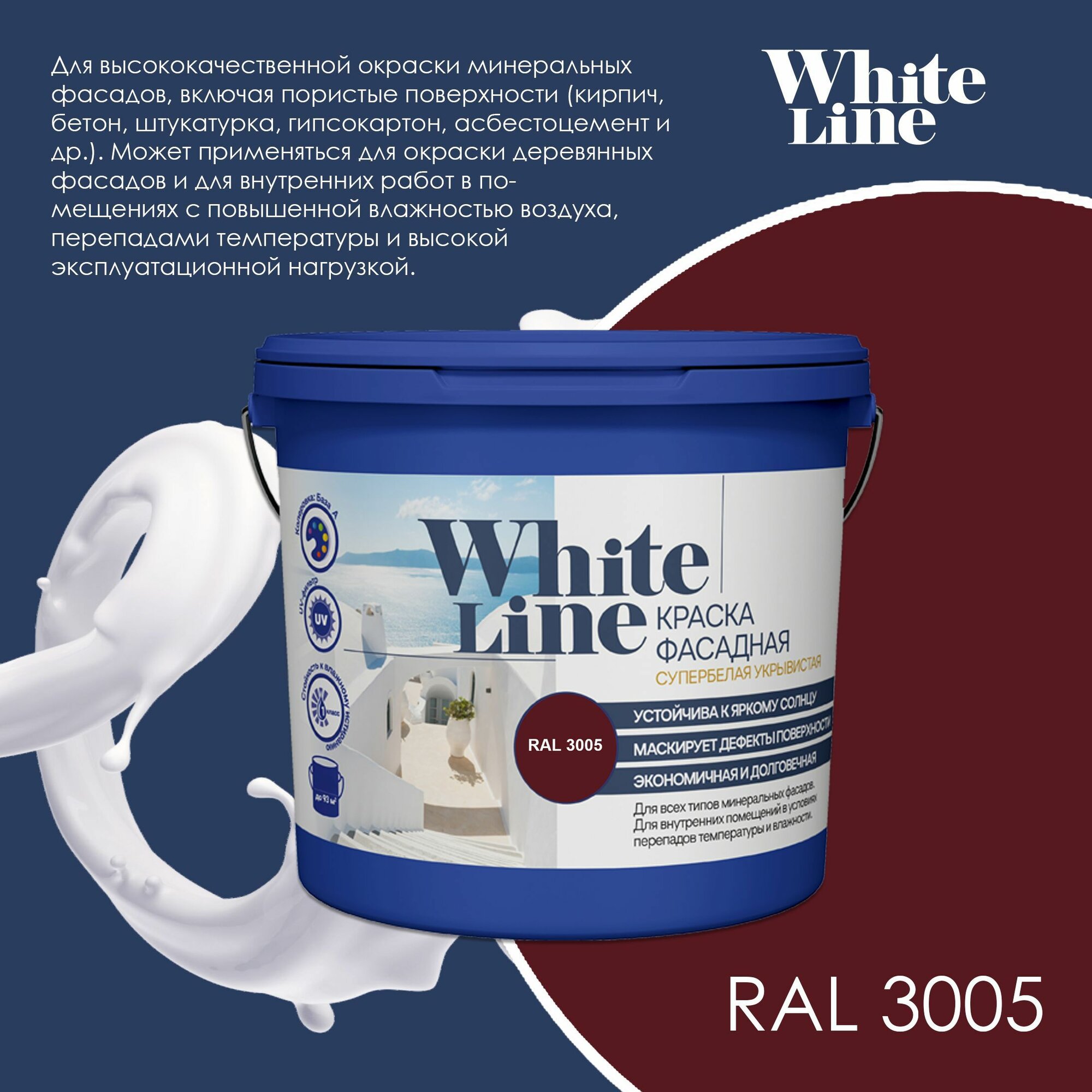White Line Краска фасадная для наружных работ, укрывистая / акриловая, матовая, RAL 3005 Красное вино, 3,4 кг
