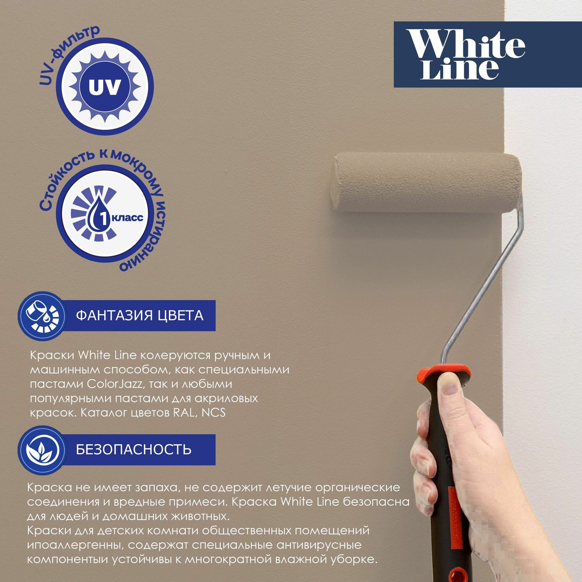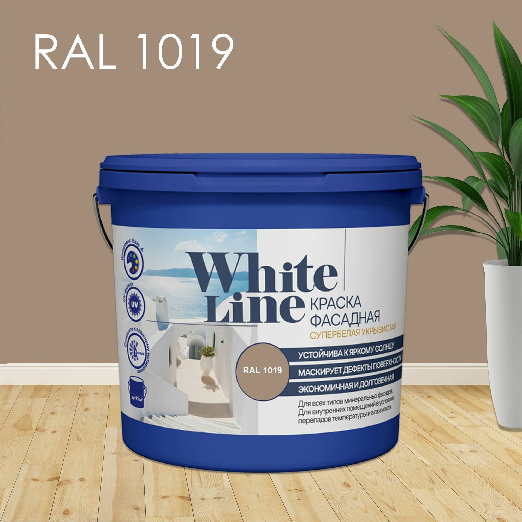 White Line Краска фасадная для наружных работ, укрывистая / акриловая, матовая, RAL 1019 Серо-бежевый, 3,4 кг