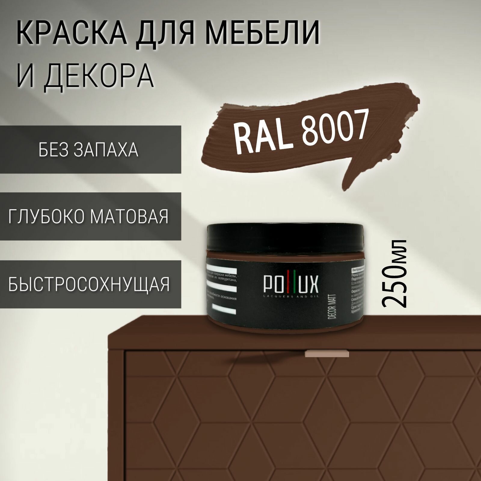 Краска для мебели без запаха матовая быстросохнущая для кухни / дерева / декора акриловая Pollux Decor Matt, объем 0,25л, цвет махаон коричневый (RAL 8016)