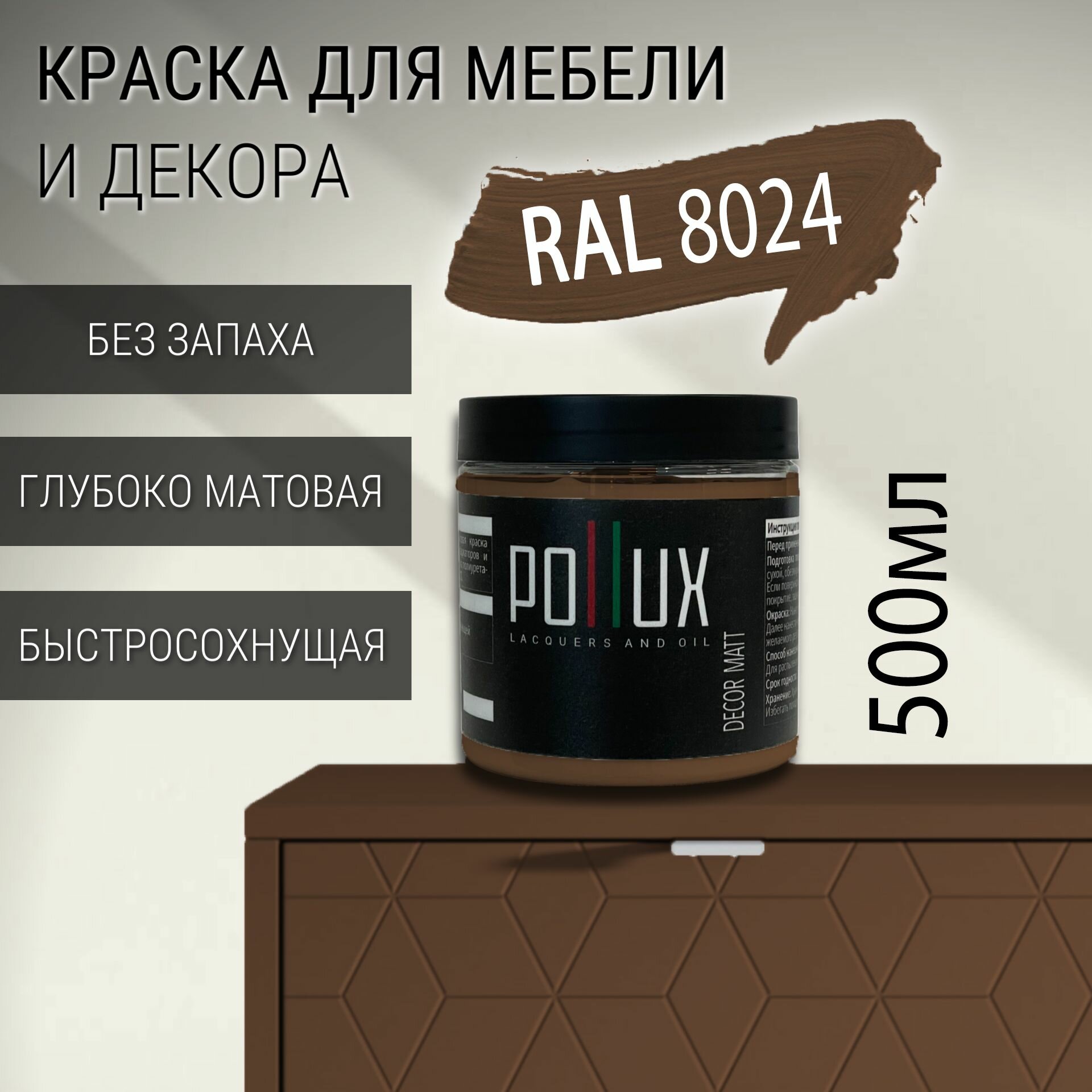 Краска для мебели без запаха матовая быстросохнущая для кухни / дерева / декора акриловая Pollux Decor Matt, объем 0,5л, цвет махаон коричневый (RAL 8016)