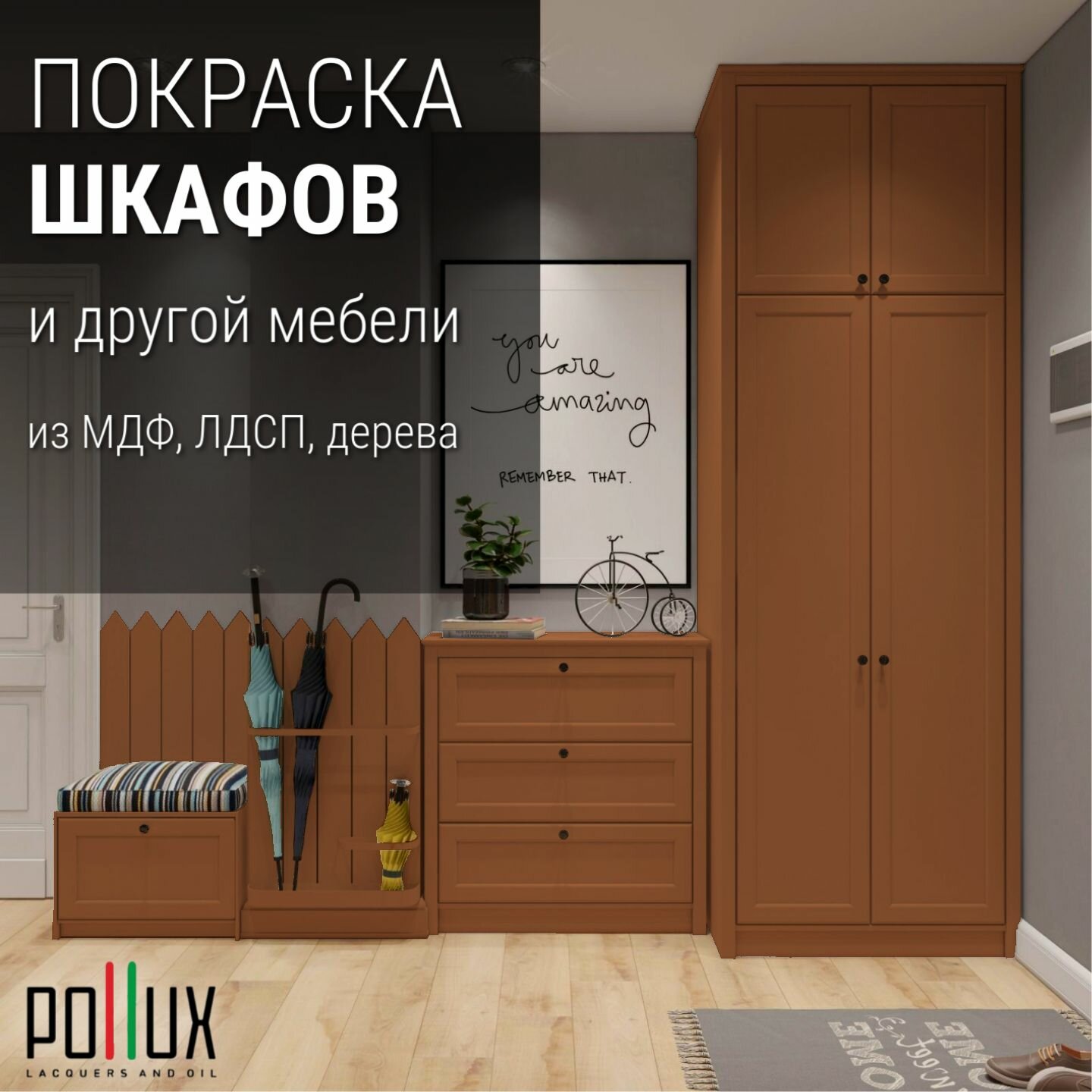 Краска для мебели без запаха матовая быстросохнущая для кухни / дерева / декора акриловая Pollux Decor Matt, объем 0,5л, цвет сигнальный коричневый (RAL 8002)