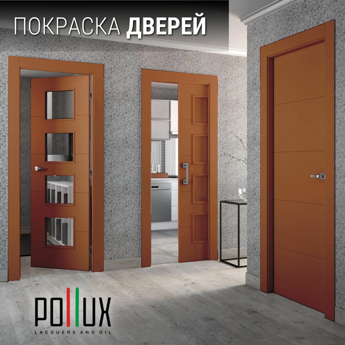 Краска для мебели без запаха матовая быстросохнущая для кухни / дерева / декора акриловая Pollux Decor Matt, объем 0,5л, цвет терракотовый (RAL 8028)