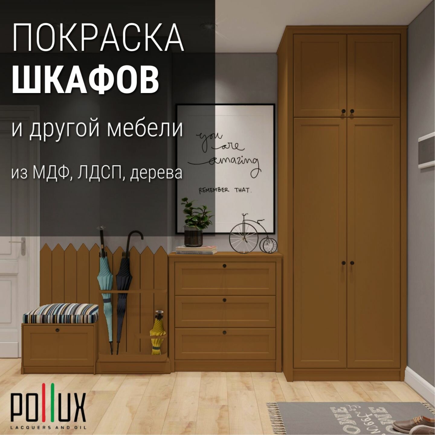 СохранитьКраска для мебели без запаха матовая быстросохнущая для кухни / дерева / декора акриловая Pollux Decor Matt, объем 0,5л, цвет охра коричневая (RAL 8001) интересное: