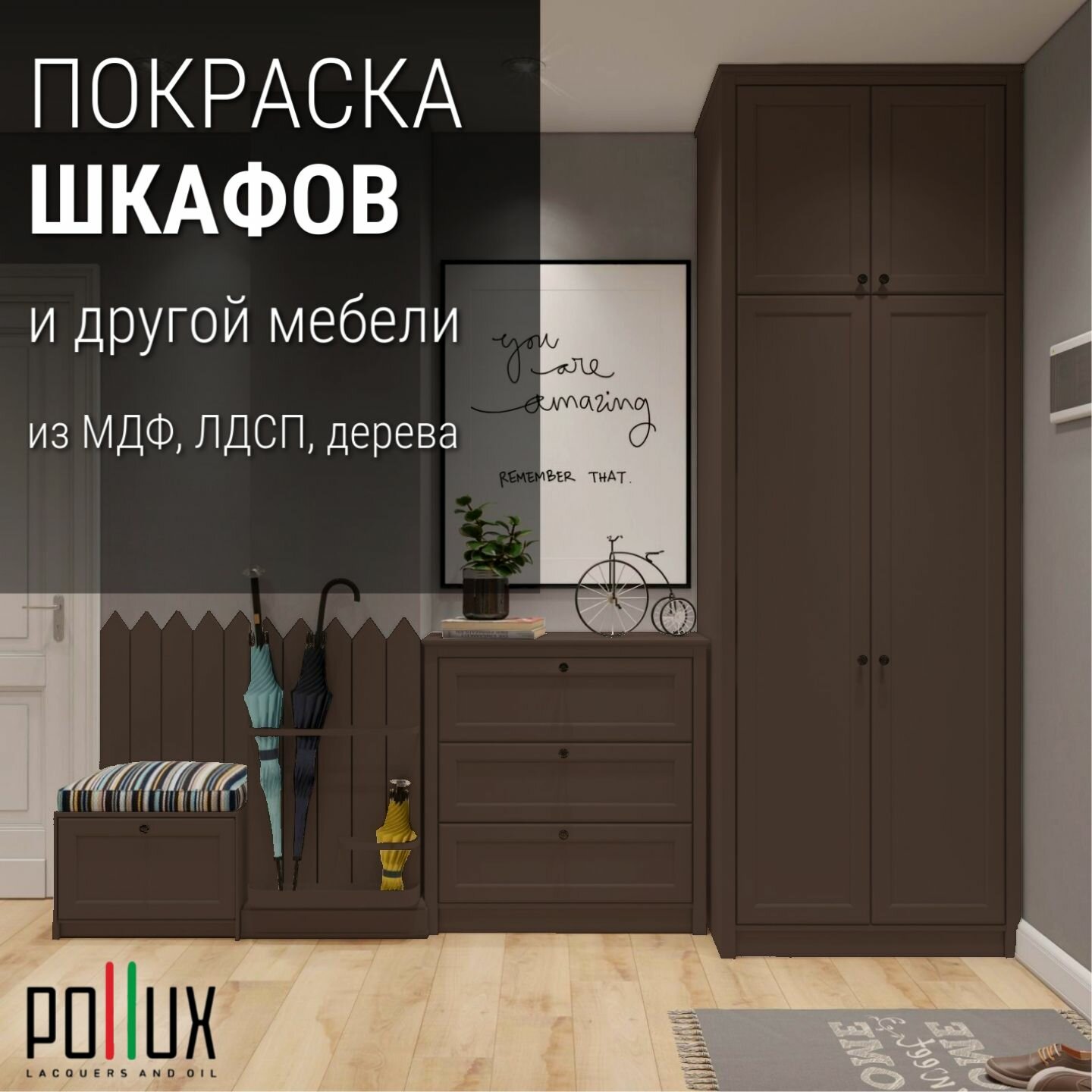 Краска для мебели без запаха матовая быстросохнущая для кухни / дерева / декора акриловая Pollux Decor Matt, объем 0,5л, цвет махаон коричневый (RAL 8016)