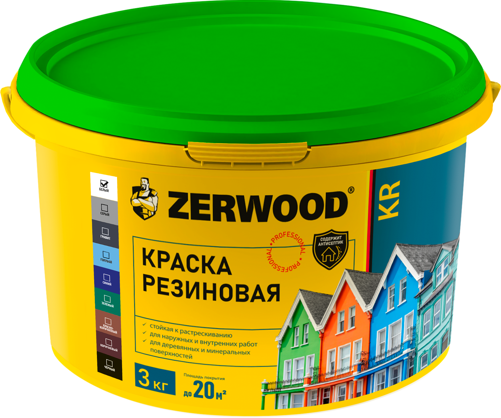 Краска резиновая ZERWOOD KR (3 кг.) - зеленая