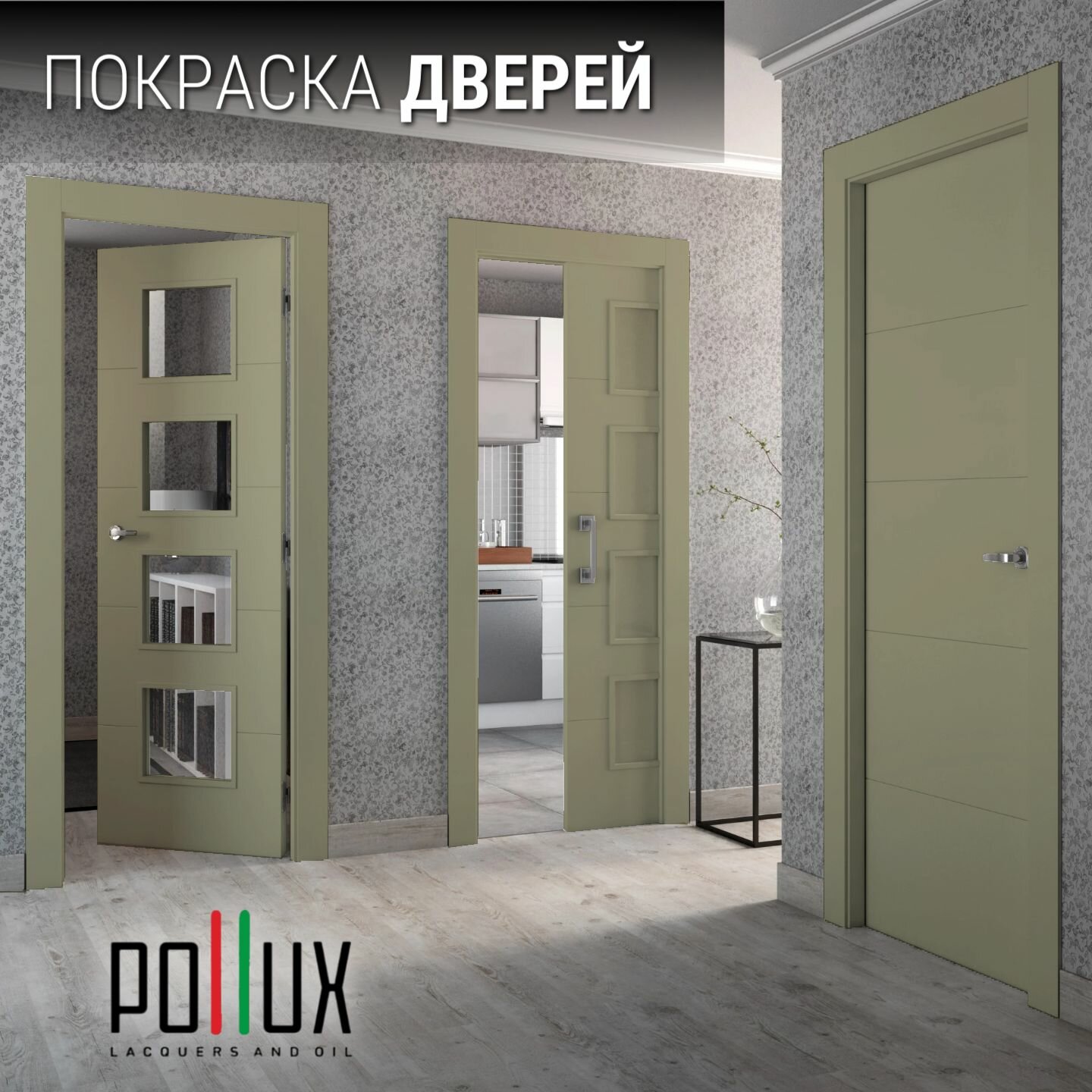 Краска для мебели без запаха матовая быстросохнущая для кухни / дерева / декора акриловая Pollux Decor Matt, объем 0,5л, цвет оливково-серый (RAL 7002)