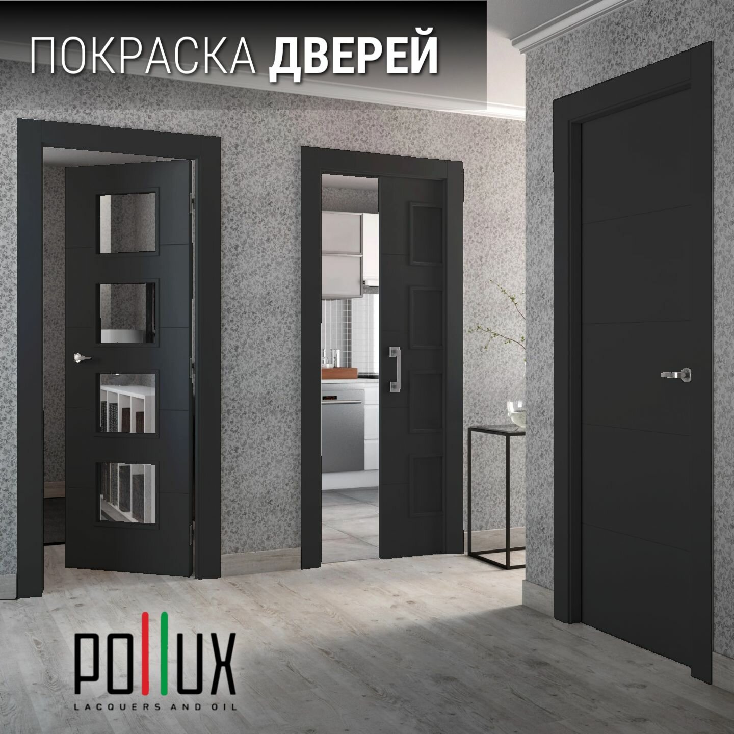 Краска для мебели без запаха матовая быстросохнущая для кухни / дерева / декора акриловая Pollux Decor Matt, объем 0,25л, цвет графитно-чёрный (RAL 9011)
