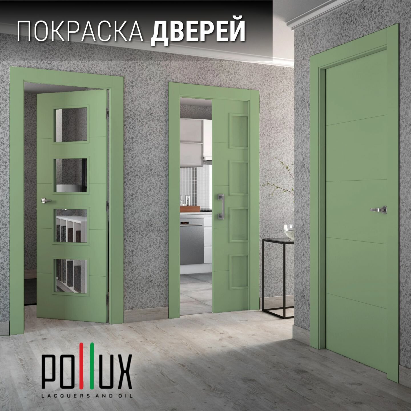 Краска для мебели без запаха матовая быстросохнущая для кухни / дерева / декора акриловая Pollux Decor Matt, объем 0,25л, цвет сигнальный зелёный (RAL 6032)