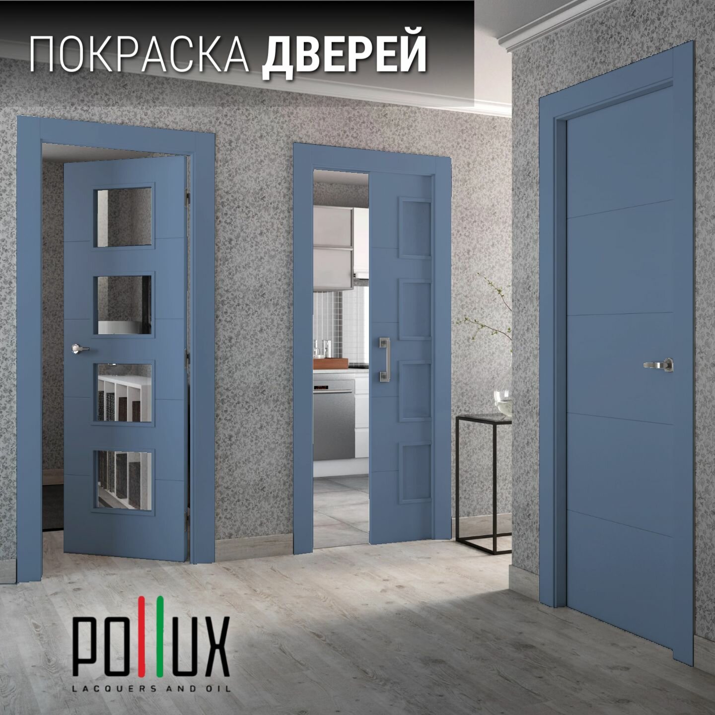Краска для мебели без запаха матовая быстросохнущая для кухни / дерева / декора акриловая Pollux Decor Matt, объем 0,25л, цвет серо-синий (RAL 5008)