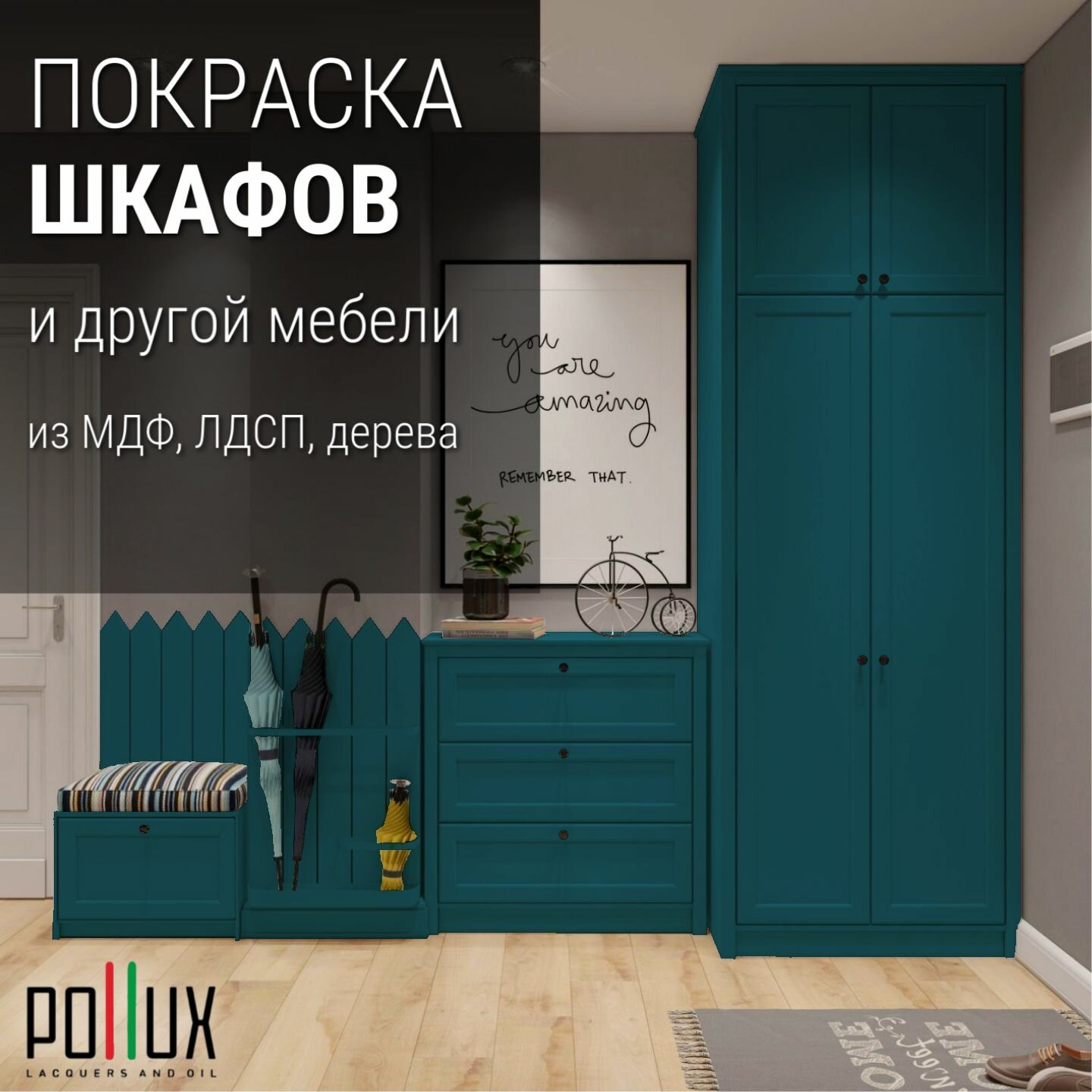 Краска для мебели без запаха матовая быстросохнущая для кухни / дерева / декора акриловая Pollux Decor Matt, объем 0,25л, цвет сине-зелёный (RAL 6004)