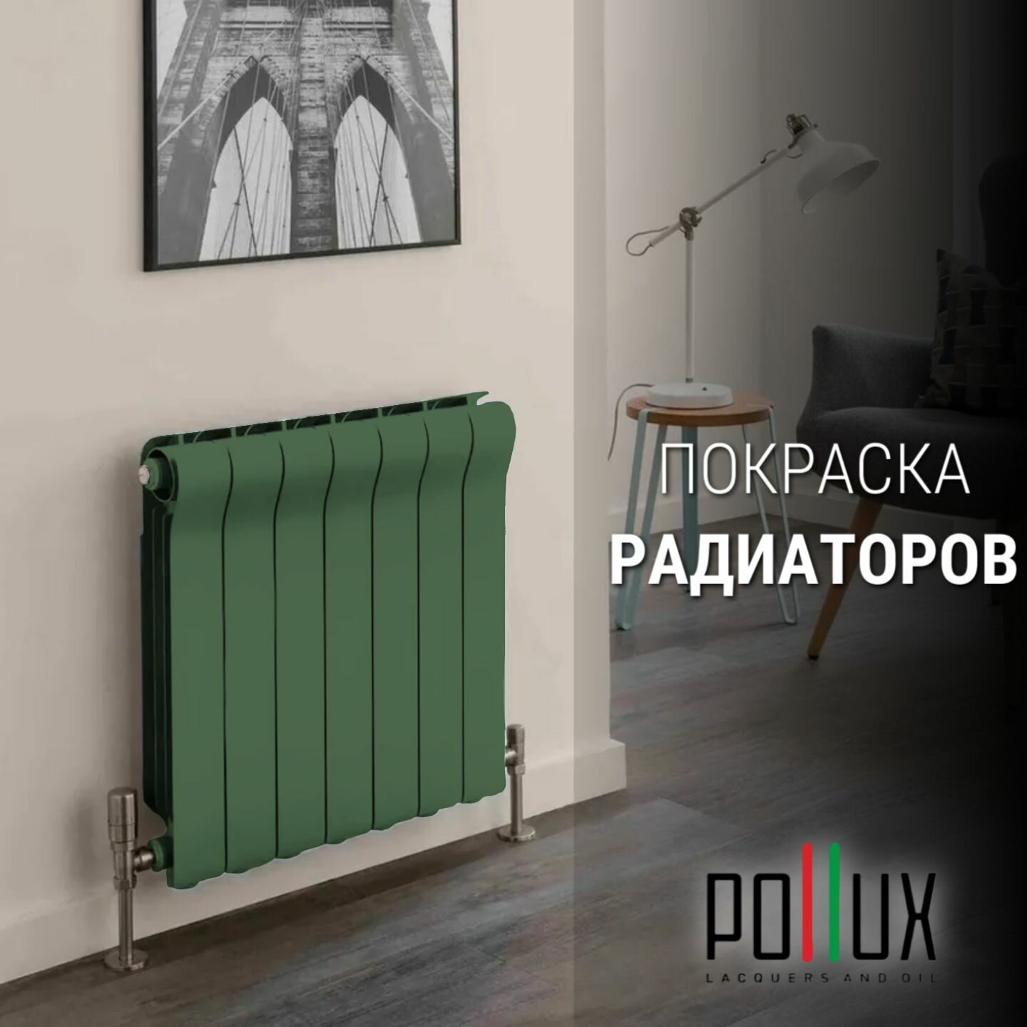 Краска для мебели без запаха матовая быстросохнущая для кухни / дерева / декора акриловая Pollux Decor Matt, объем 0,25л, цвет транспортный зелёный (RAL 6024)