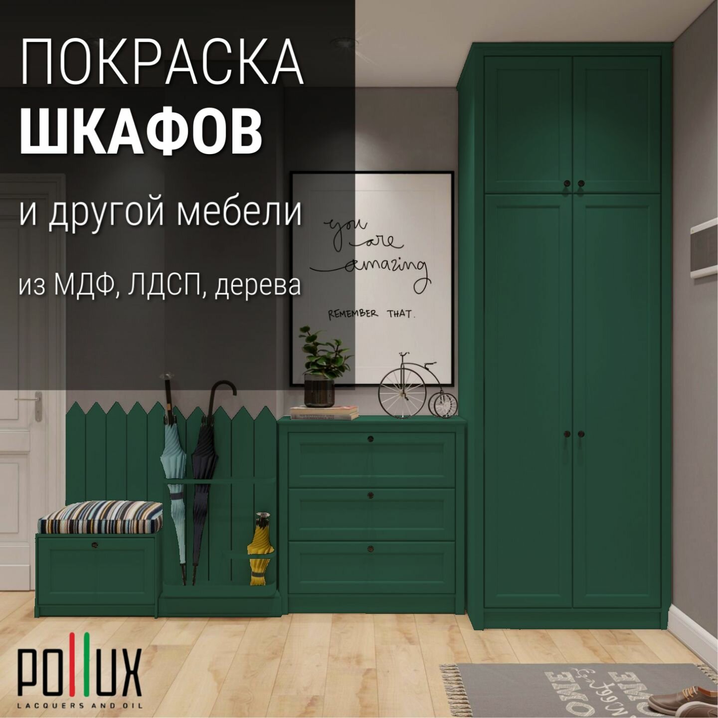 Краска для мебели без запаха матовая быстросохнущая для кухни / дерева / декора акриловая Pollux Decor Matt, объем 0,5л, цвет изумрудно-зеленый (RAL 6001)
